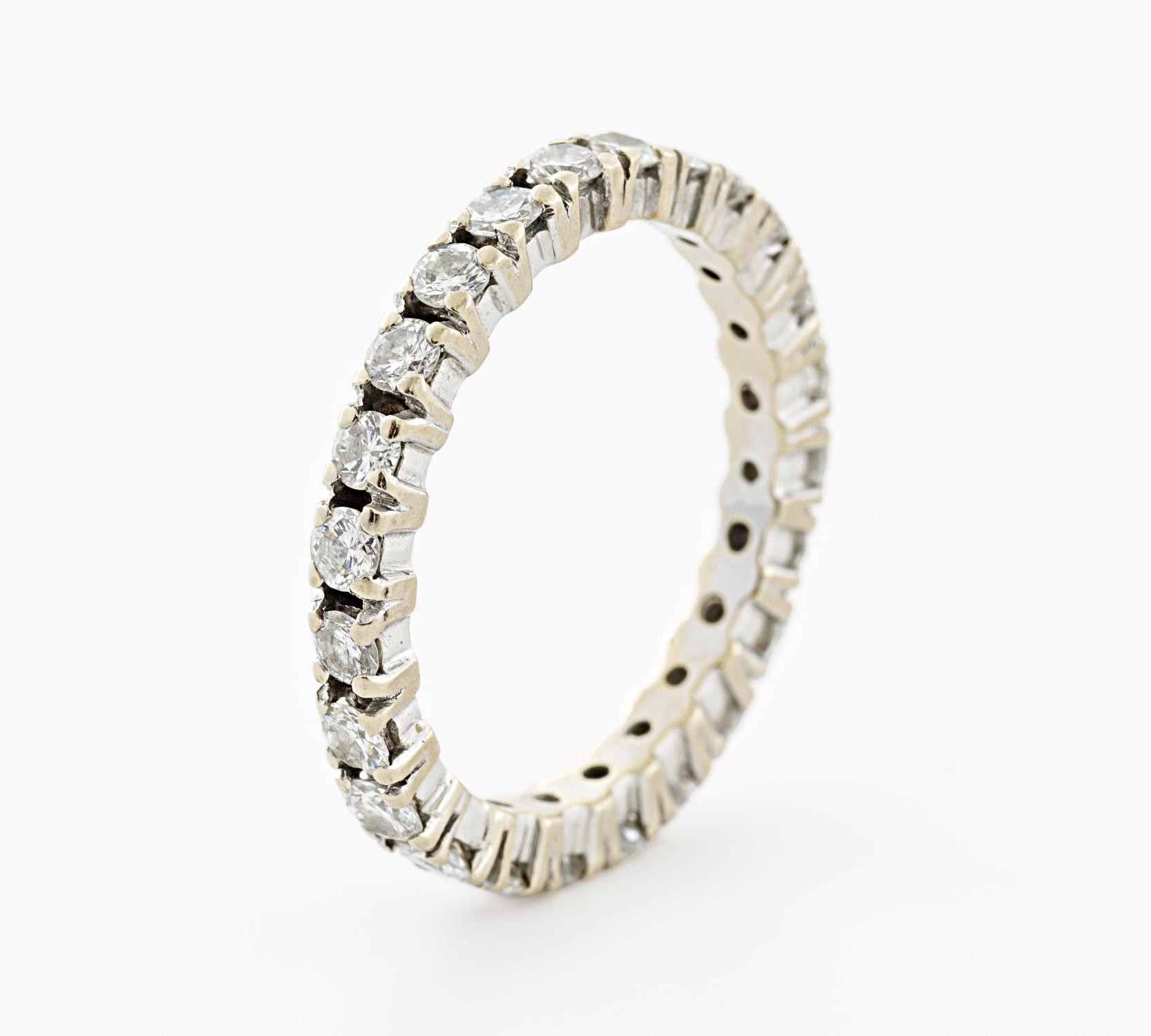 750/- Weißgold, Gewicht: 2,5g. 24 Brillanten zus.ca. 1,152ct TW-W(G-H) VVS, EU-RM: 54,5.