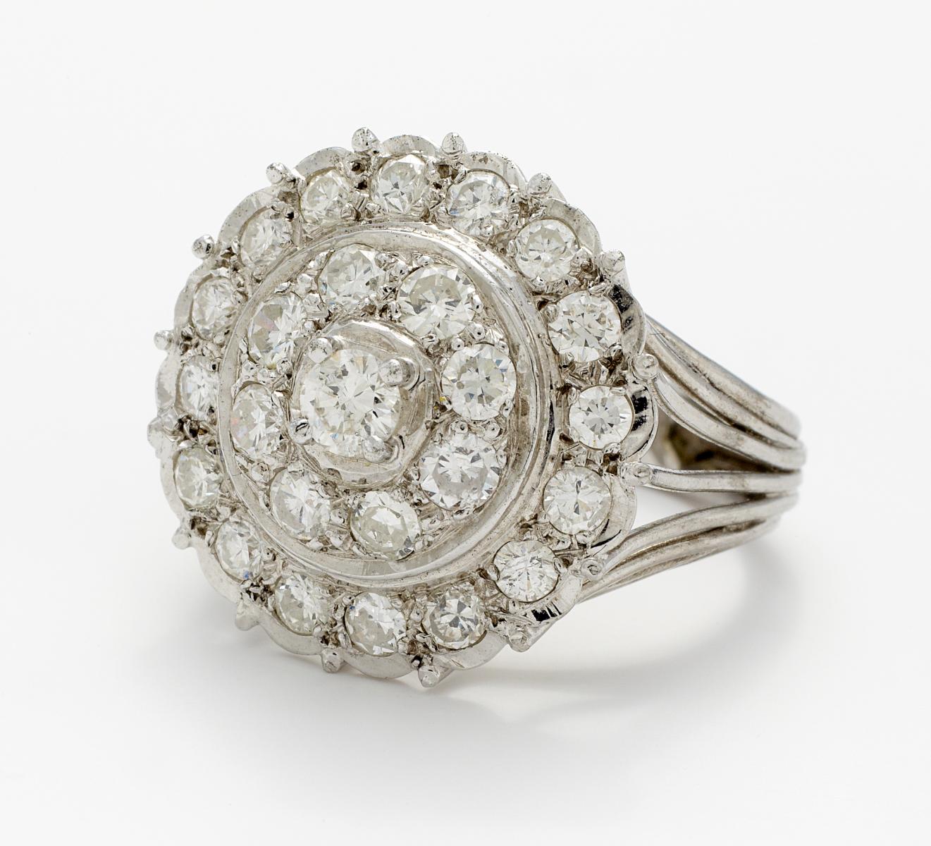 Weißgold. 8,1g. 25 Brillanten, EU-RM: 57. Ringtop: D.ca. 2,0cm.~