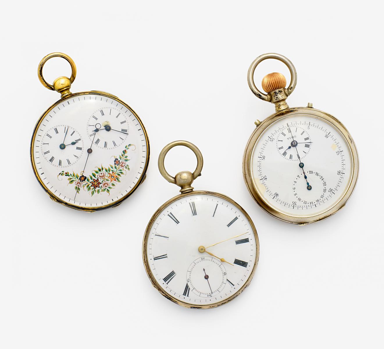 Konvolut: Eine Taschenuhr, zwei Spindeltaschenuhren.