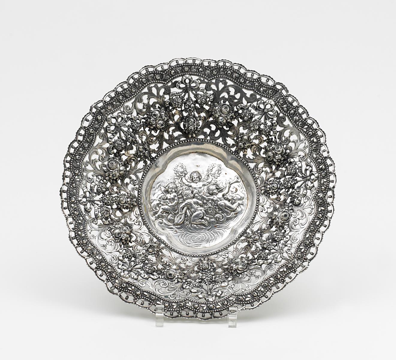 Silber. H.7,5cm, + 36cm. Ca. 744g. Zustand B.