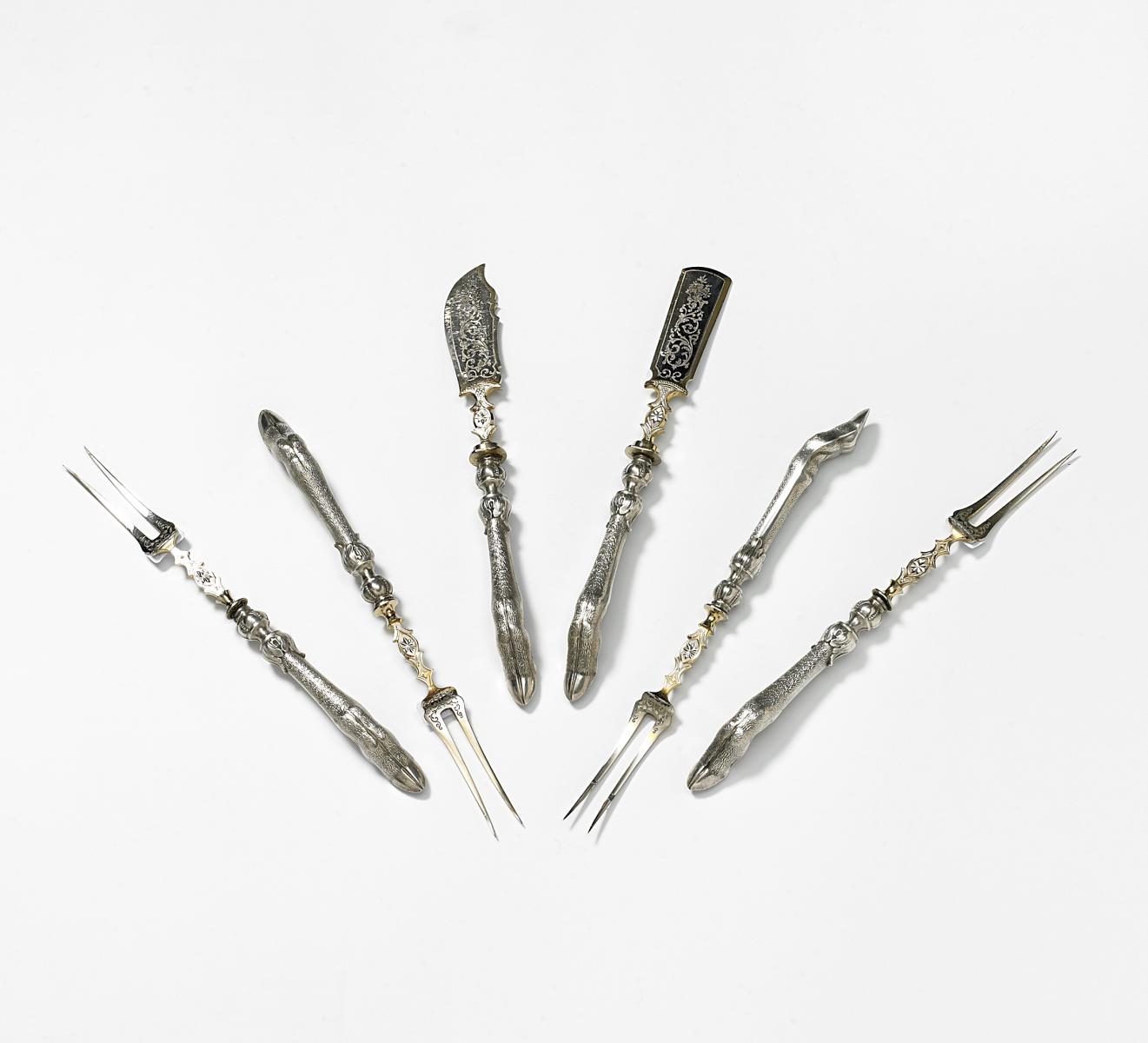 Jagdbesteck mit Rehbeingriffen.