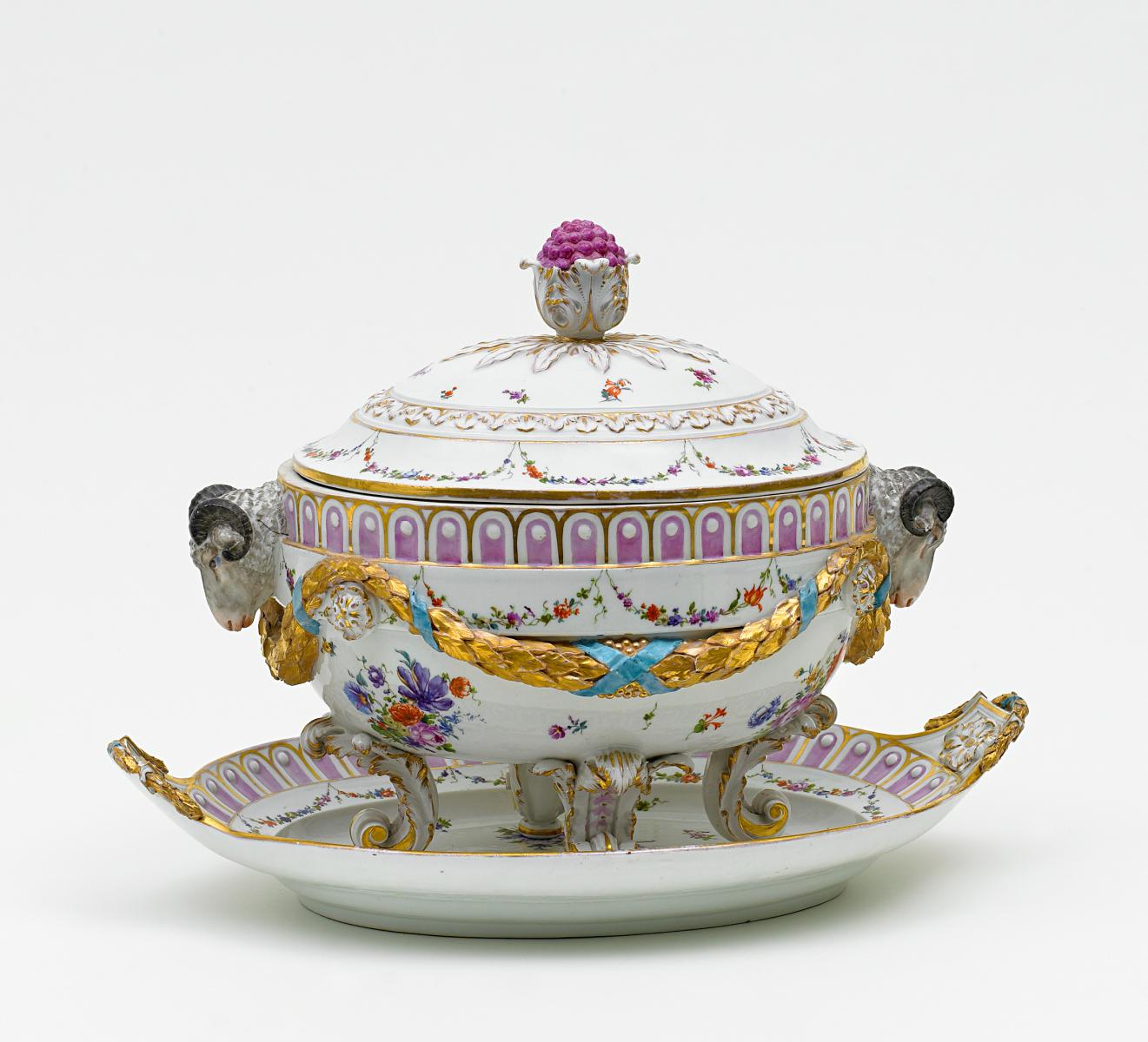 Porzellan, farbig und gold staffiert. 31 x 35cm. Zustand C.
