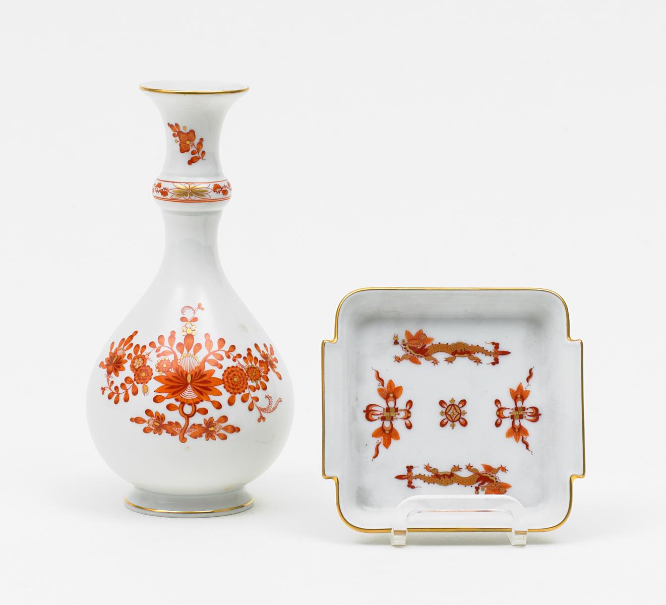 Kleine Vase und Ascher Drachendekor.
