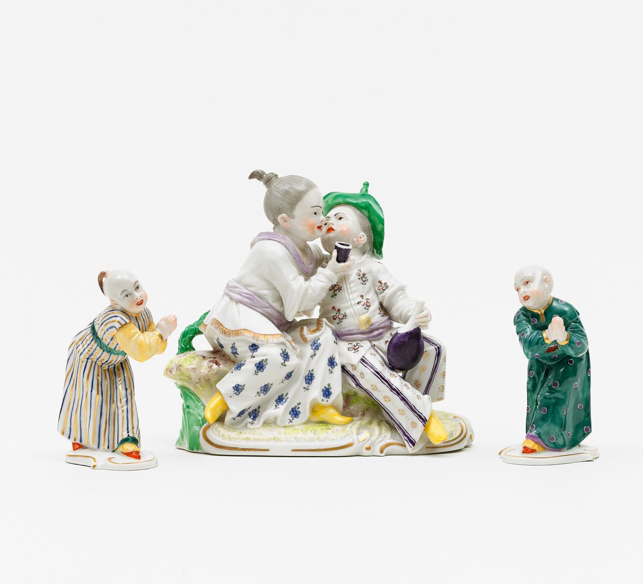 Porzellan, farbig und gold staffiert. H.9,5/10/14cm. Zustand A.