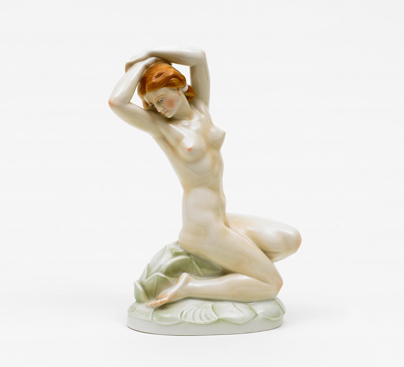 Porzellan, farbiges Dekor. H.31,5cm. Zustand A. Auf Sockel bez. 'P.W. Goebel'.