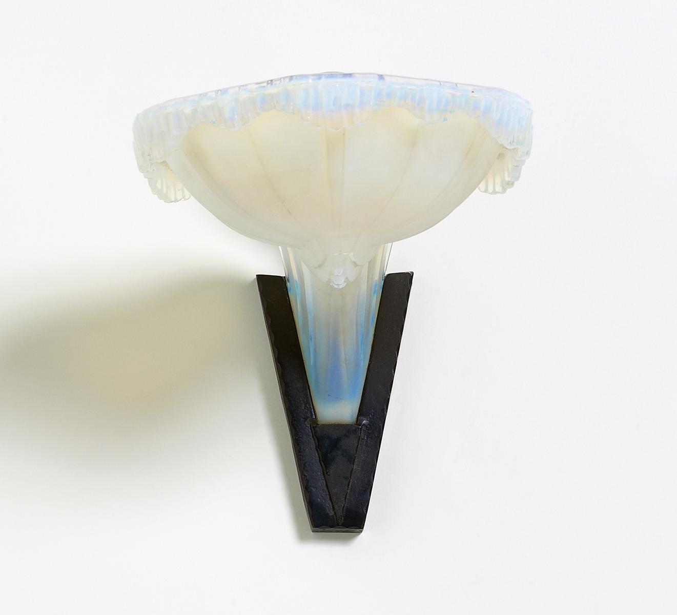 Opalinglas, Metallmontierung. H.33cm. Zustand A/B. Elektrifiziert.