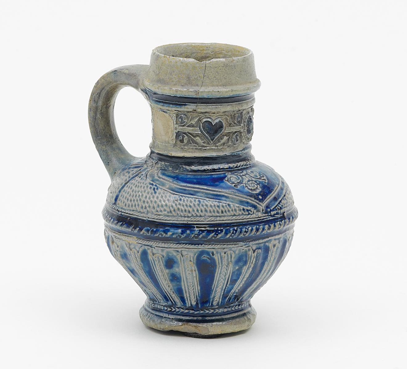 Graues, salzglasiertes Steinzeug, blauer Dekor. H.14cm. Zustand C.