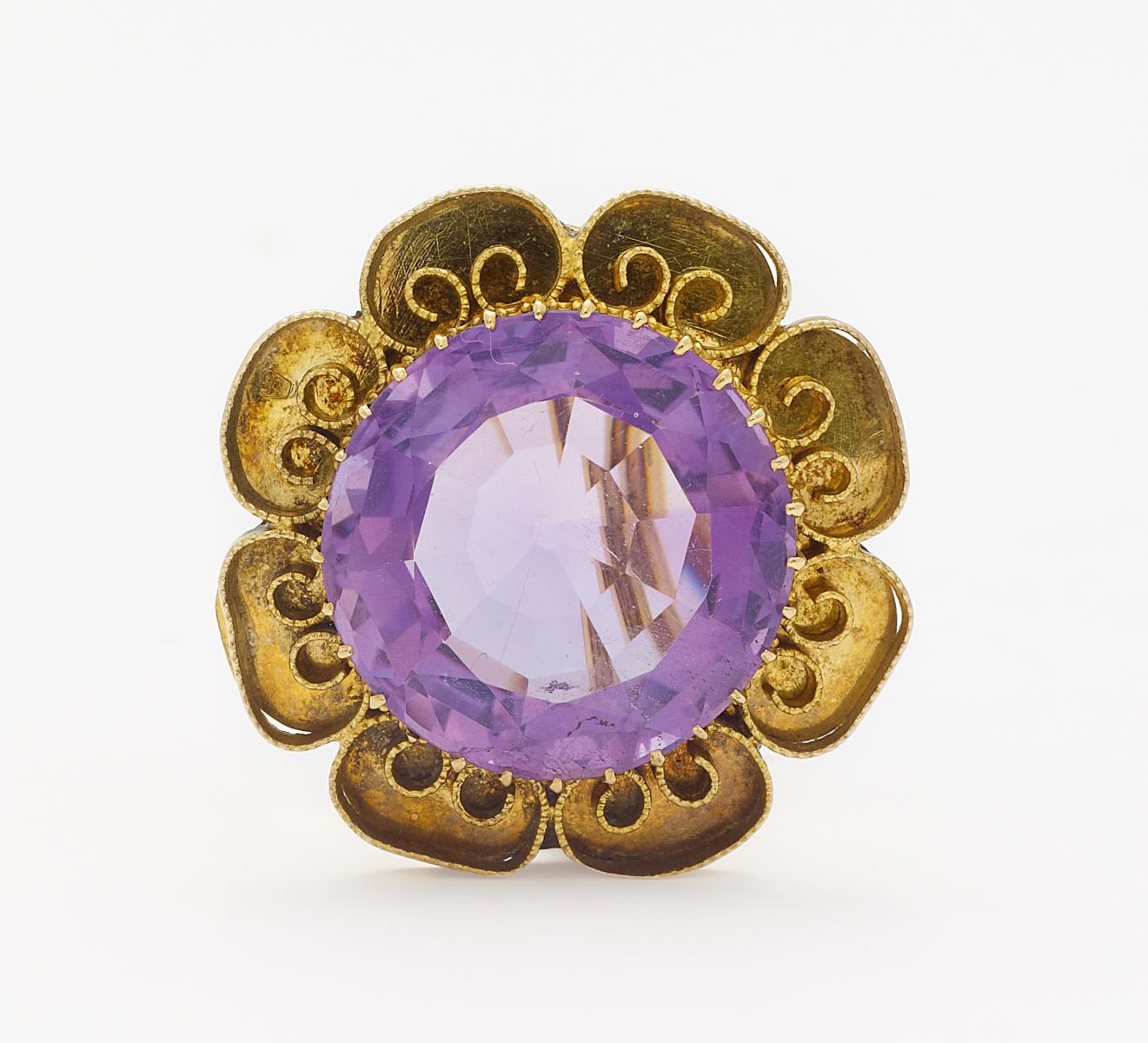 333/- Gelbgold. 2,1g. 1 rund facettierter Amethyst, D.ca. 2,5cm.~