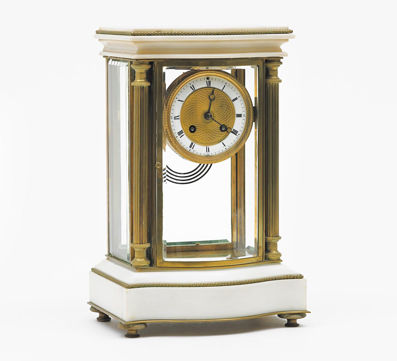 Bronze, Marmor, Quecksilberpendel. 35x23x15cm. Zustand A/B. Pendulewerk mit Federaufhängung, Schlag auf Tonfeder und Quecksilberpendel.