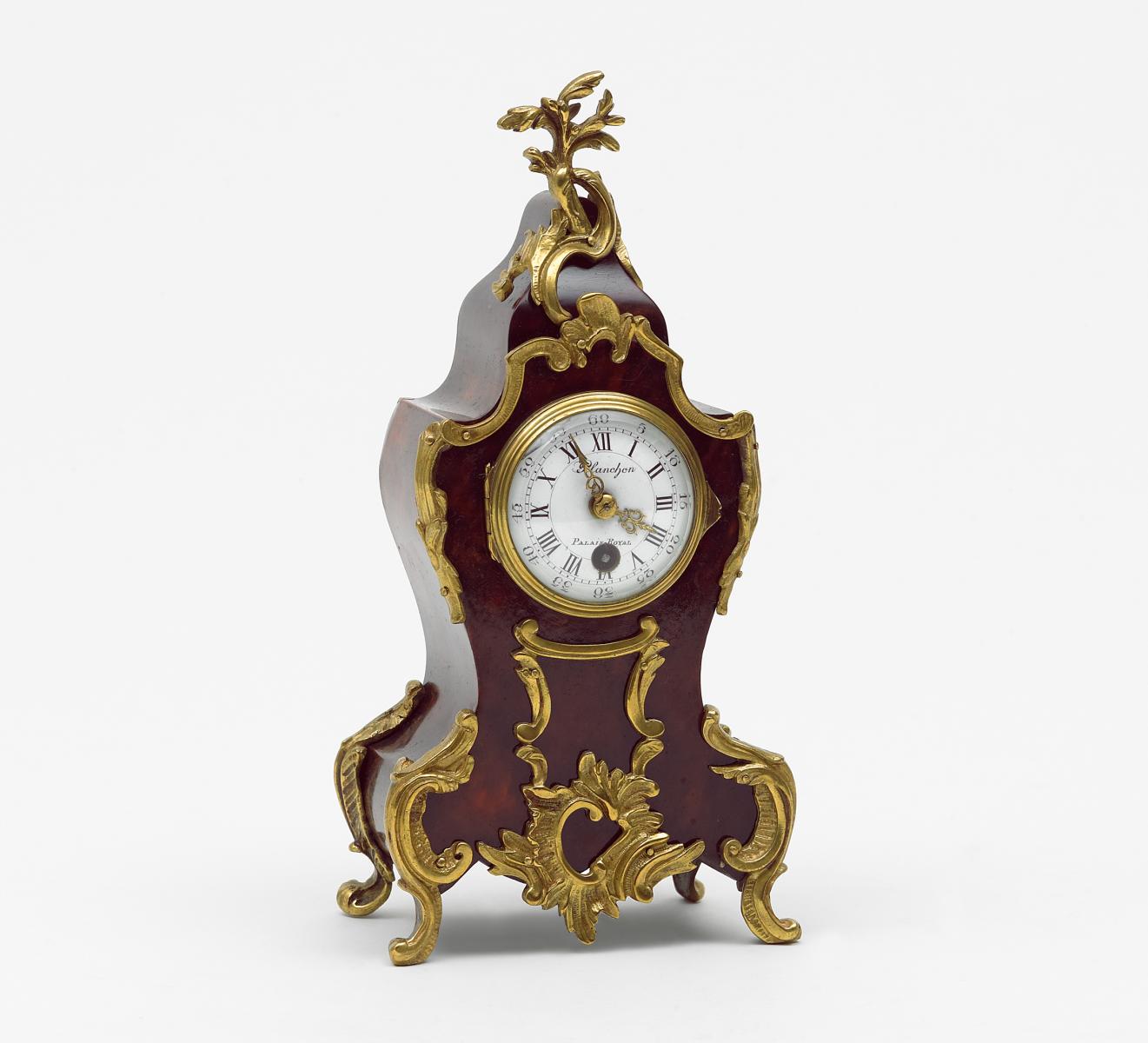 Holz, Bronze. H.24,5cm. Zustand B. Gehwerk mit Echappement.