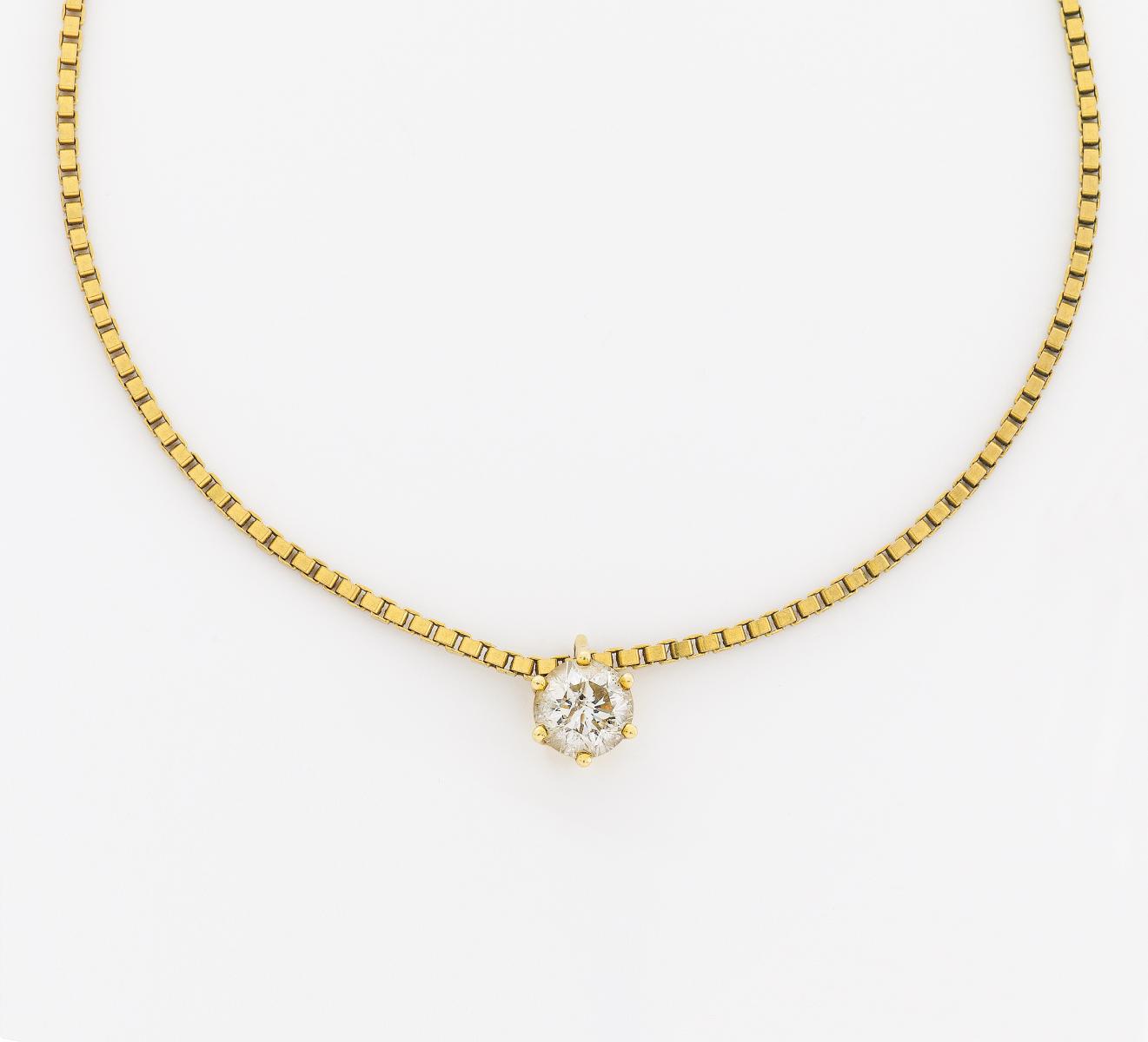 Kette: 333/- Gelbgold, gestempelt. 6,2g total. 1 Brillant D.ca. 6mm, L. 42,5cm.~
