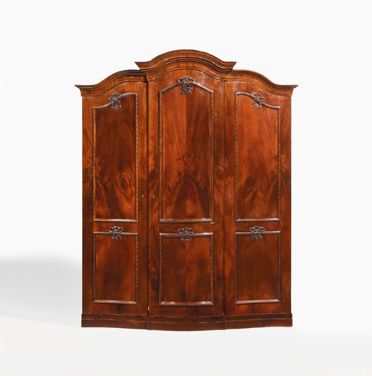 Mahagoni, auf Eiche furniert. 253x205x58cm. Zustand B.