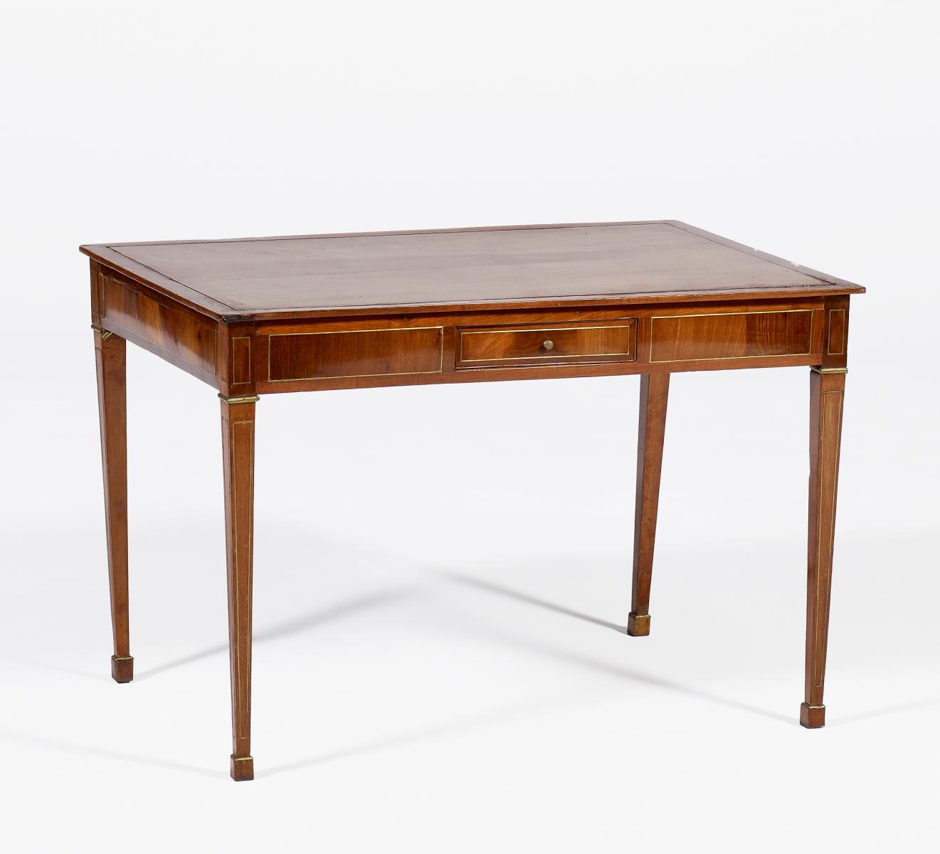 Mahagoni. Messingeinlagen. 68x100x68cm. Zustand C.