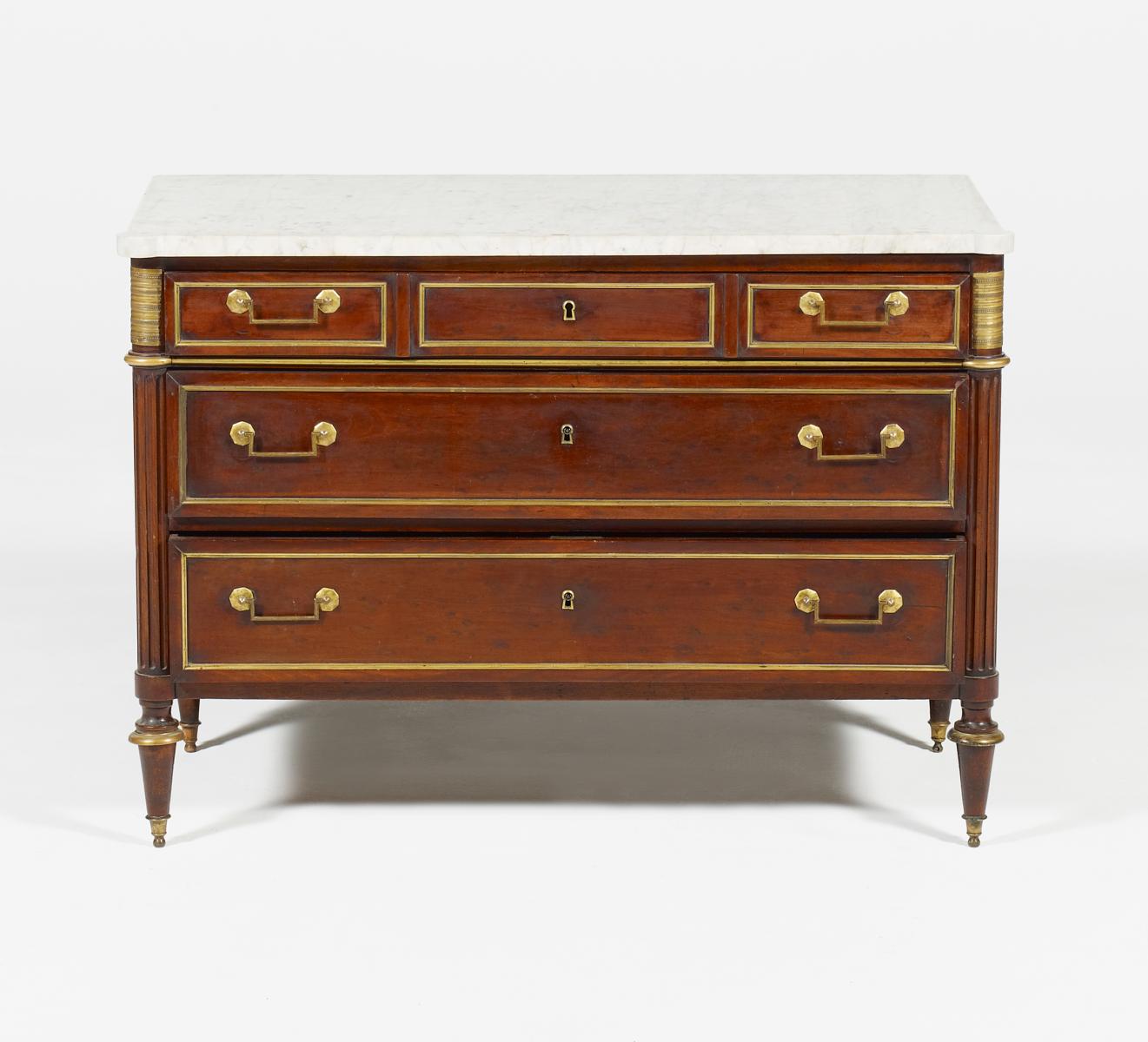 Mahagoni. Messingapplikationen. Marmorplatte. 90x124x61,5cm. Zustand C.
