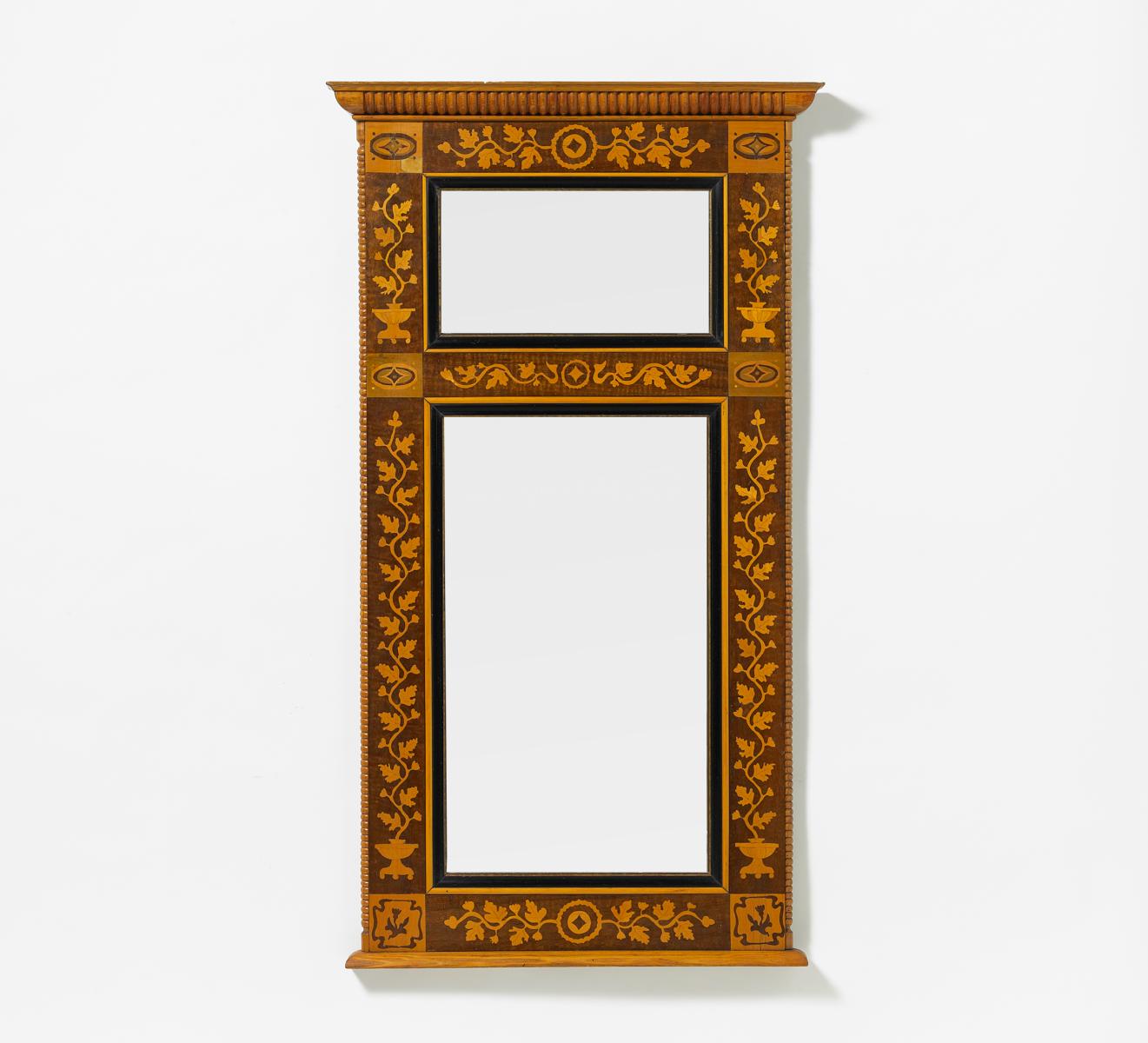 Mahagoni. Ahorn eingelegt. 120 x 67cm. Zustand B.