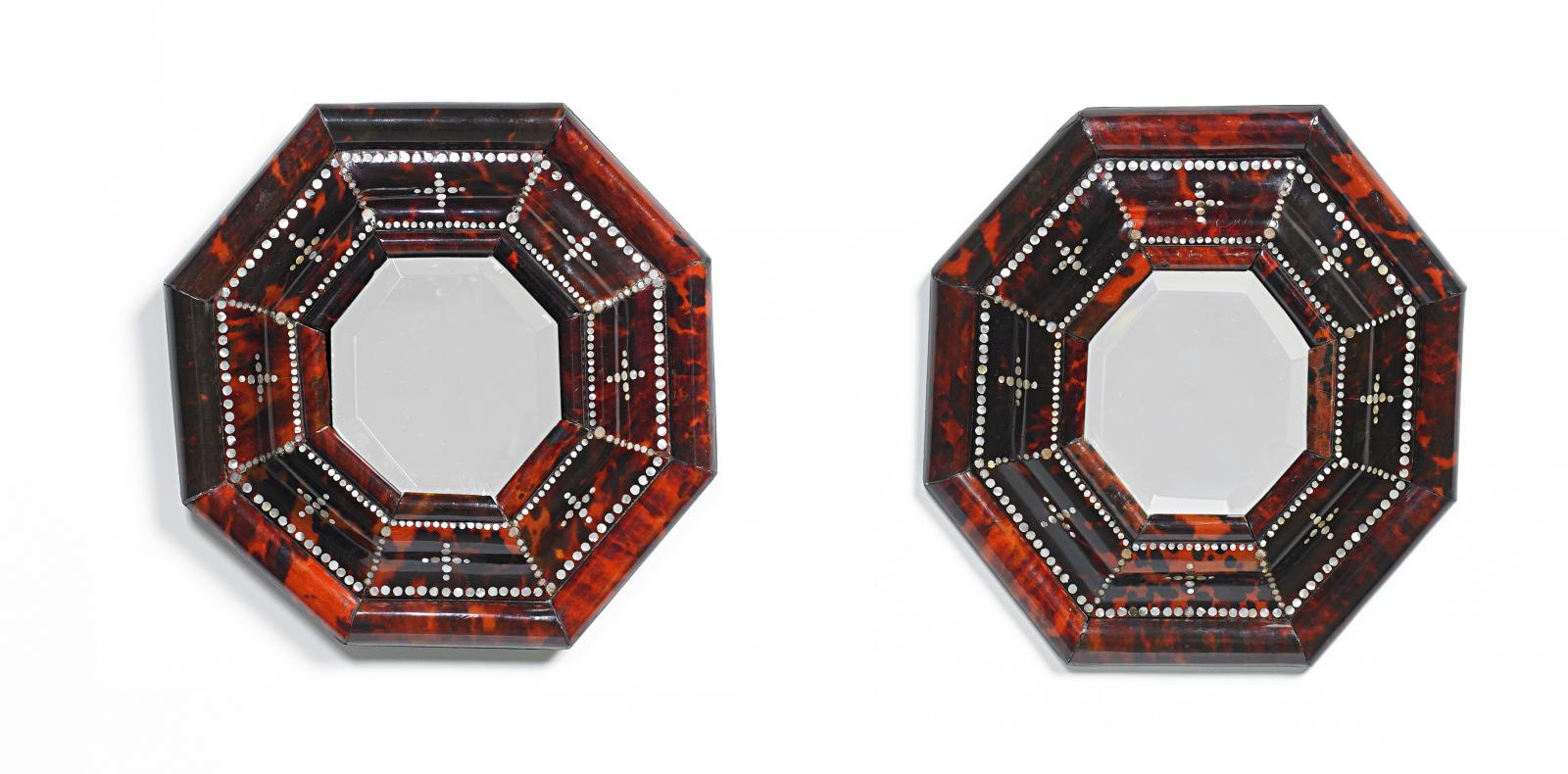Schildpatt. Profilierte oktogonale Form mit geometrischem Dekor. 26 x 26cm. Zustand B. Rückwand ergänzt.