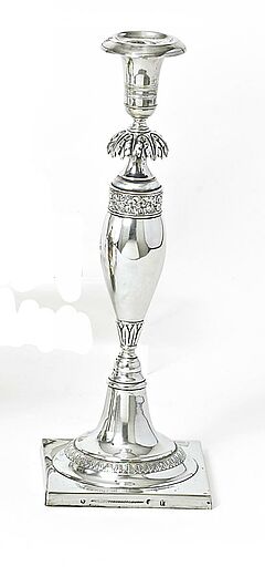 Silber. Auf quadratischer Fußplatte ansteigender Rundfuß mit Balusterschaft. Unter der leicht