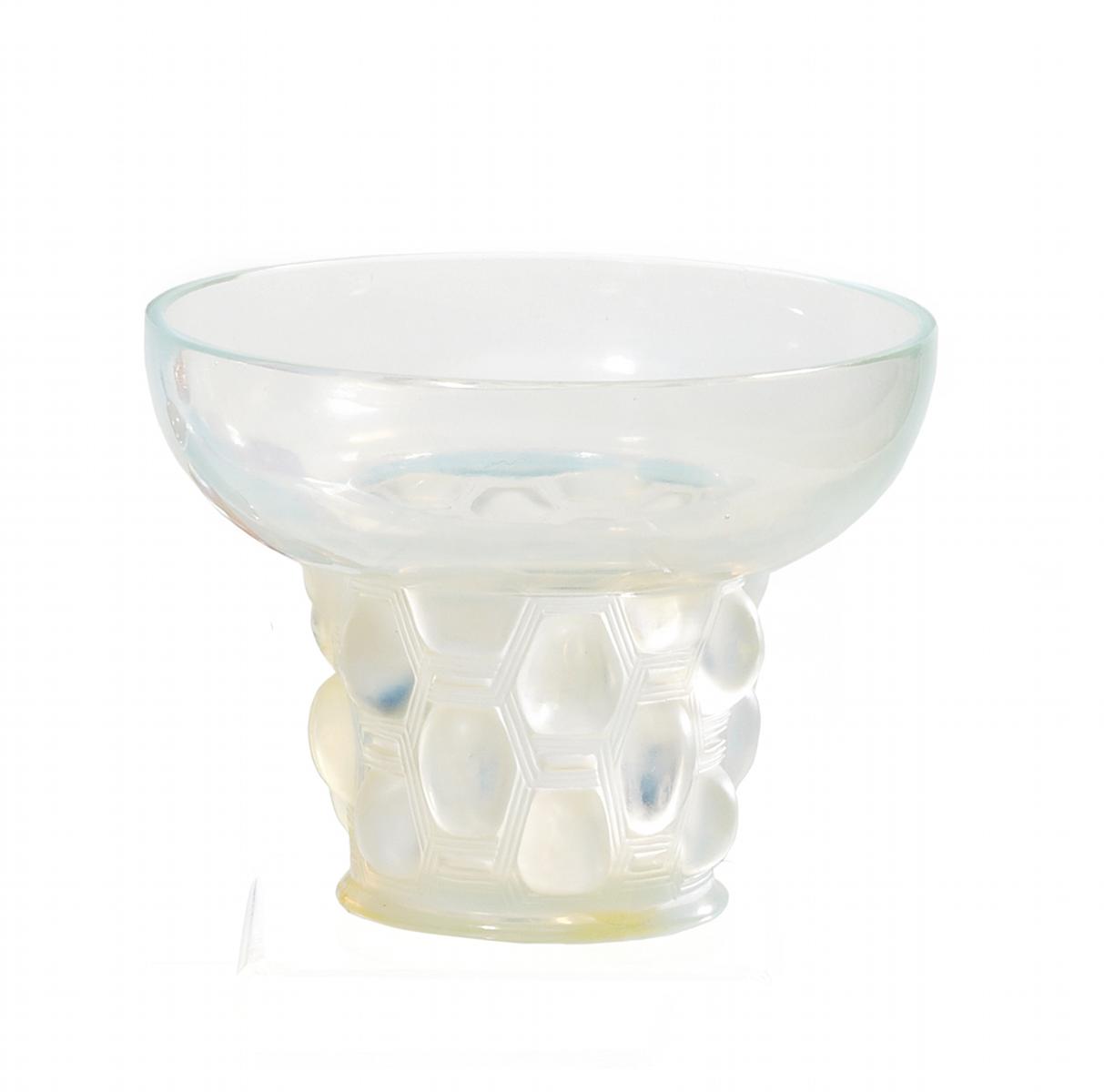 Farbloses, tlw. opaleszierendes Pressglas. Höhe 14,5cm. Zustand A.