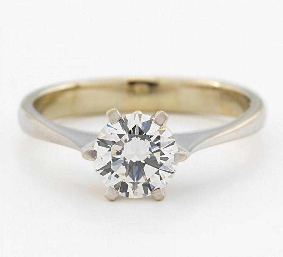 750/- Weißgold, Gewicht: 3,4g. 1 Brillant ca. 1,053ct W(H) VVS1, EU-RM: 55,5.