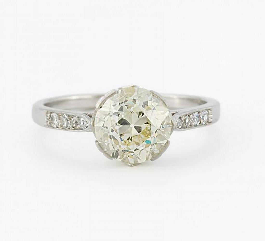 900/- Platin, Gewicht: 3,8g. 1 Altschliff-Diamant ca. 2,562ct Cape(M) SI1, 8 winzige 8/8-Diamanten, EU-RM: 55.