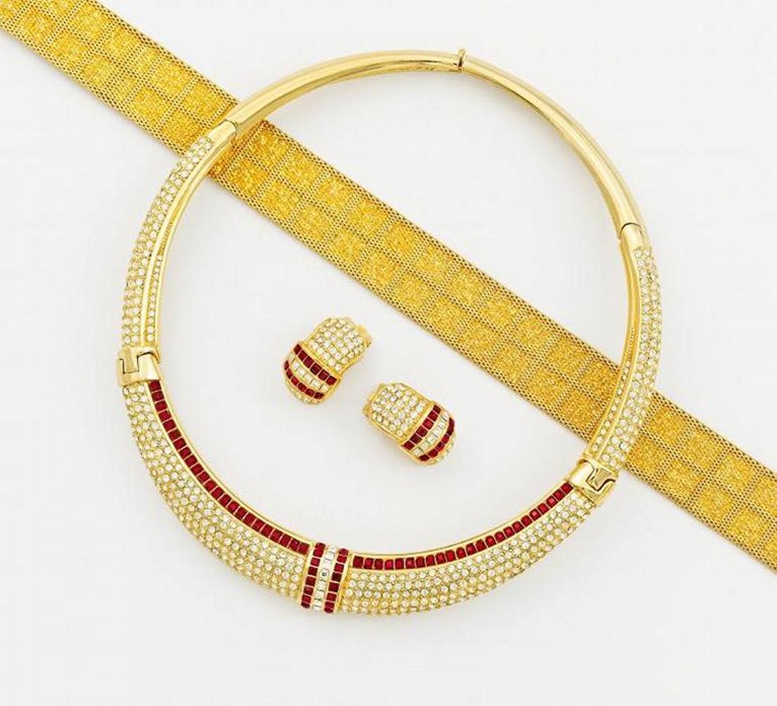 GERMANY. Halsreif: Metall/vergoldet, ca. 109,2g, vielzählige farblose und rote