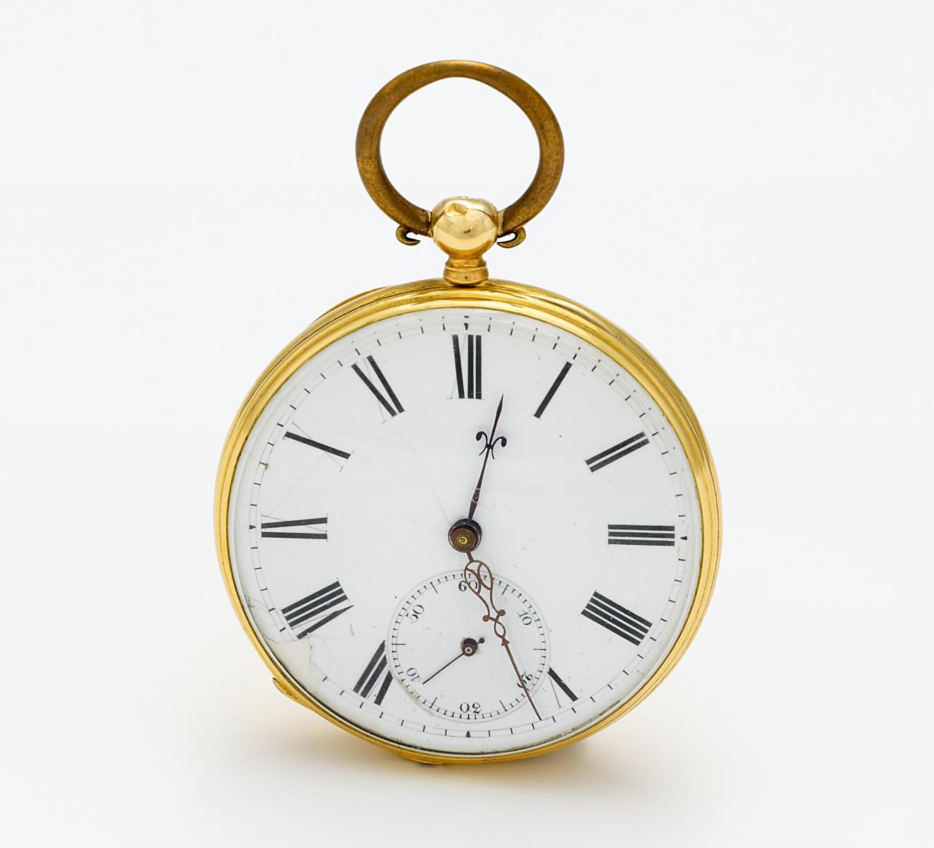 Gewicht: Goldfarben. Zffbl. Email, röm. ZiffernSchlüsselaufzugGehäuse-Nr.: D.ca. 45mm. Referenz-Nr.: 61,7g.