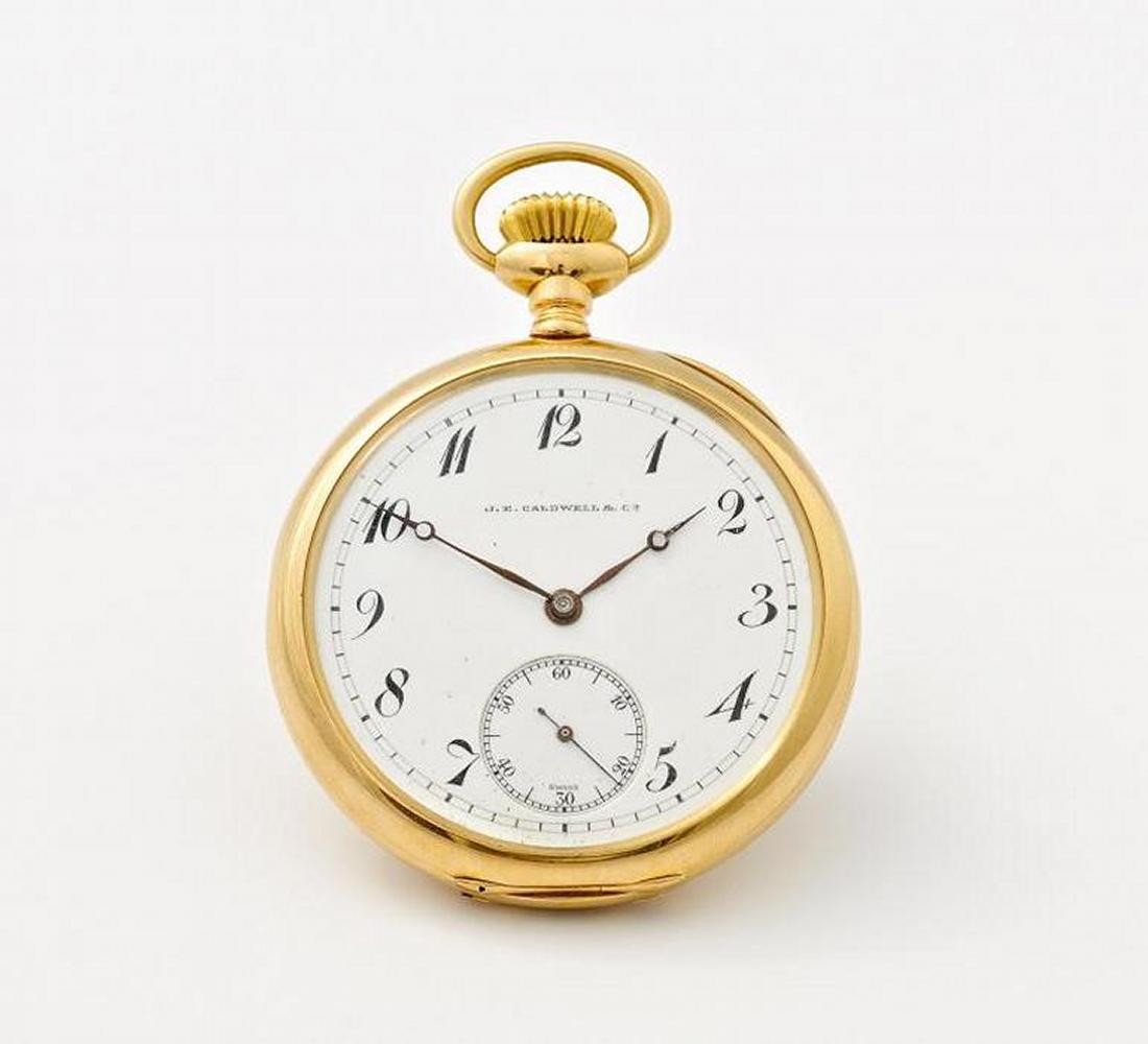 Taschenuhr. Gehäuse-Nr.: 346228. Referenz-Nr.: 17957. Gehäuse: 585/- Gelbgold, gestempelt, Zffbl. Email, Handaufzug. Auf Rückdeckel Widmung "From J.H. and A.M. Connington to Hamilton Zink July 23-1930".