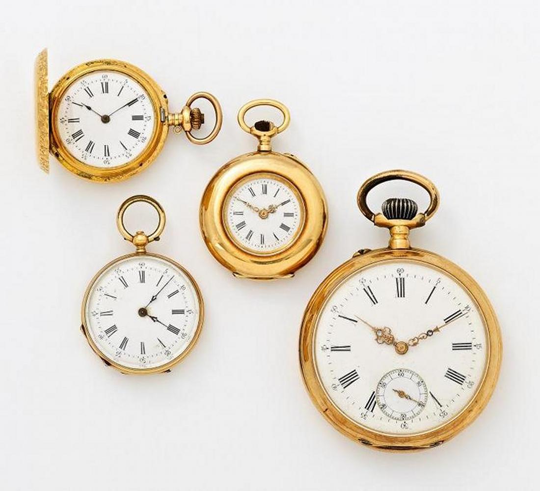 Konvolut: Vier goldene Taschenuhren.