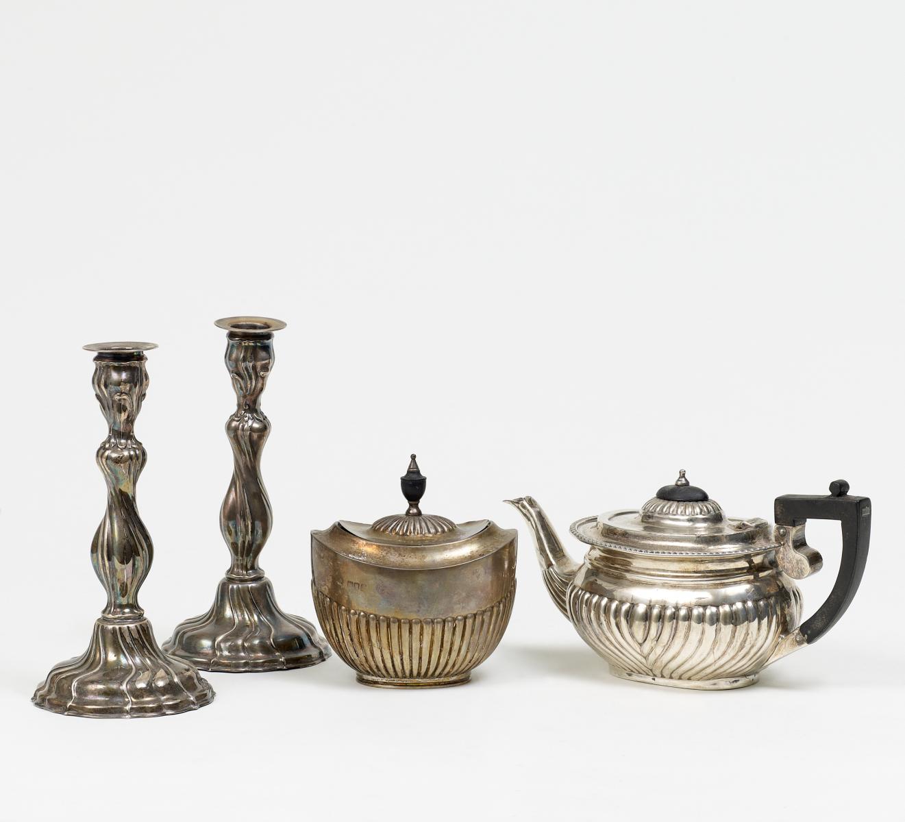 Silber. Holzhenkel, -knauf. Leuchter gefüllt. H.19/10,5/12cm. Ca.595g. Zustand B-C.