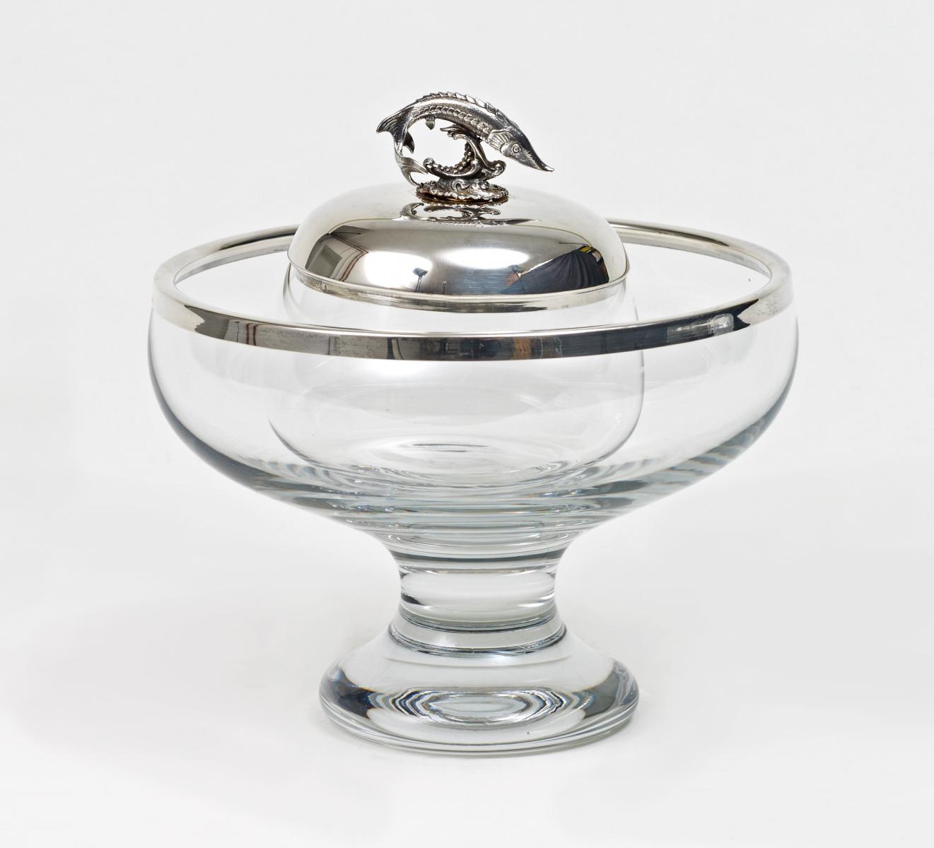 Farbloses Glas mit Silbermontierung. H. ca.17,5, + 17cm. Zustand A.