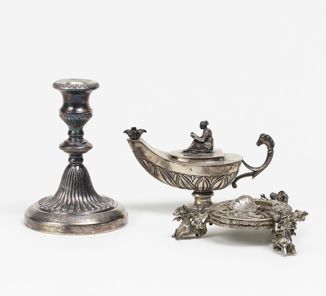 Salzgefäß mit Löffel, Öllämpchen, Leuchter.