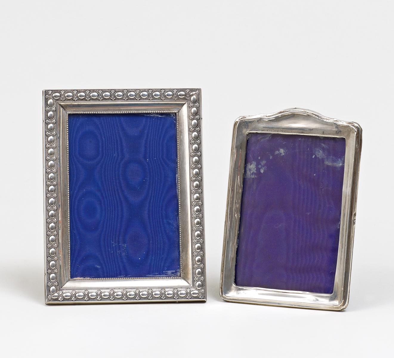 Silber, Holzkern und Glas. 19 x 14cm und 17 x 11,5cm. Zustand B/C.