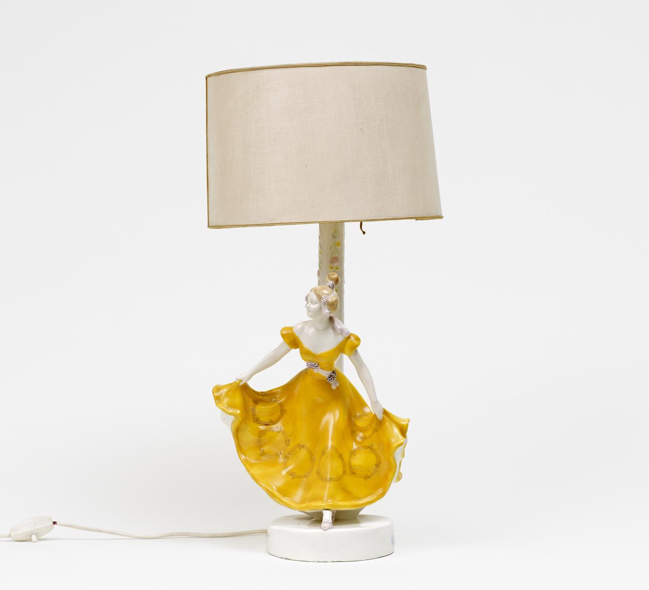 Heller Scherben, farbiges Dekor. H.57cm. Zustand C. Auf Sockel rückseitig bez. 'Latour'.