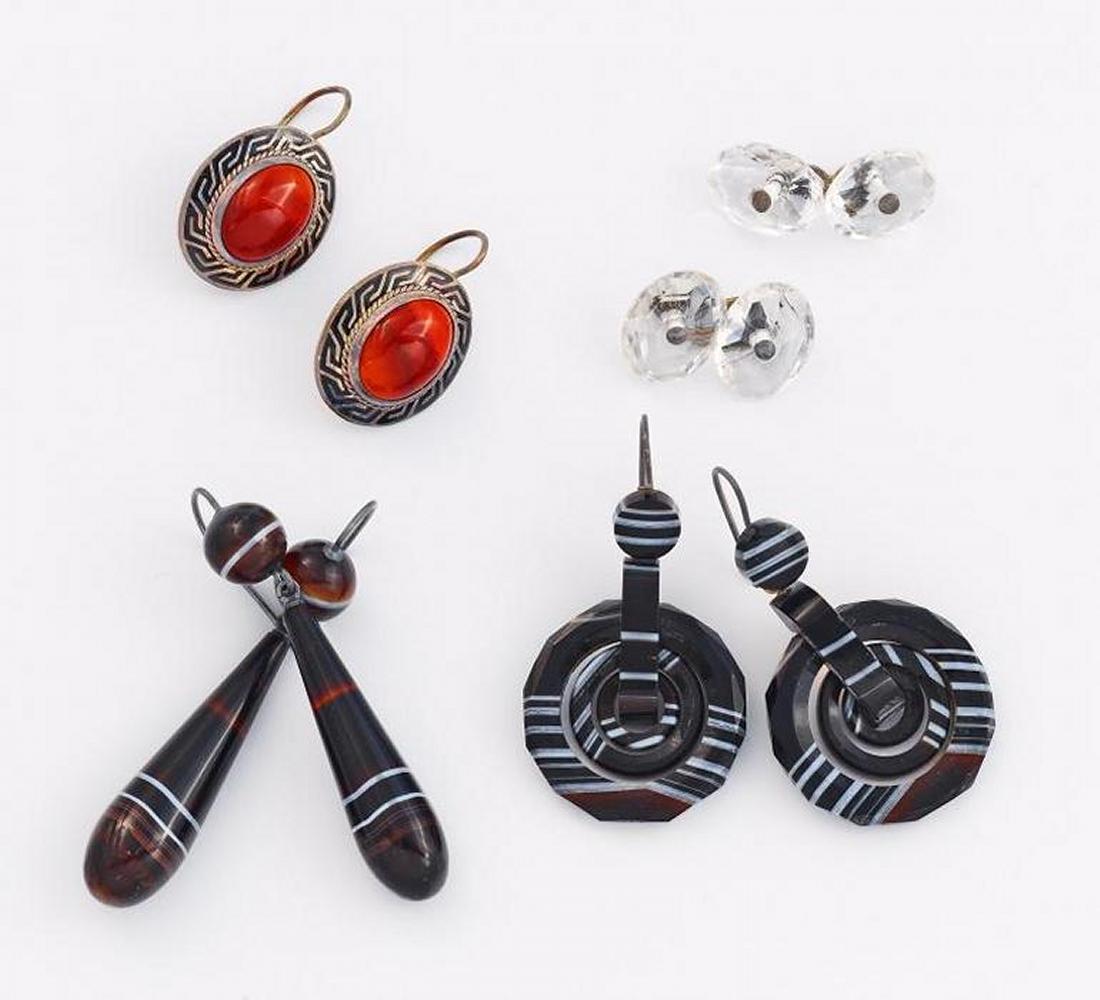 Konvolut: Sieben Paar Ohrgehänge mit Achatbesatz.