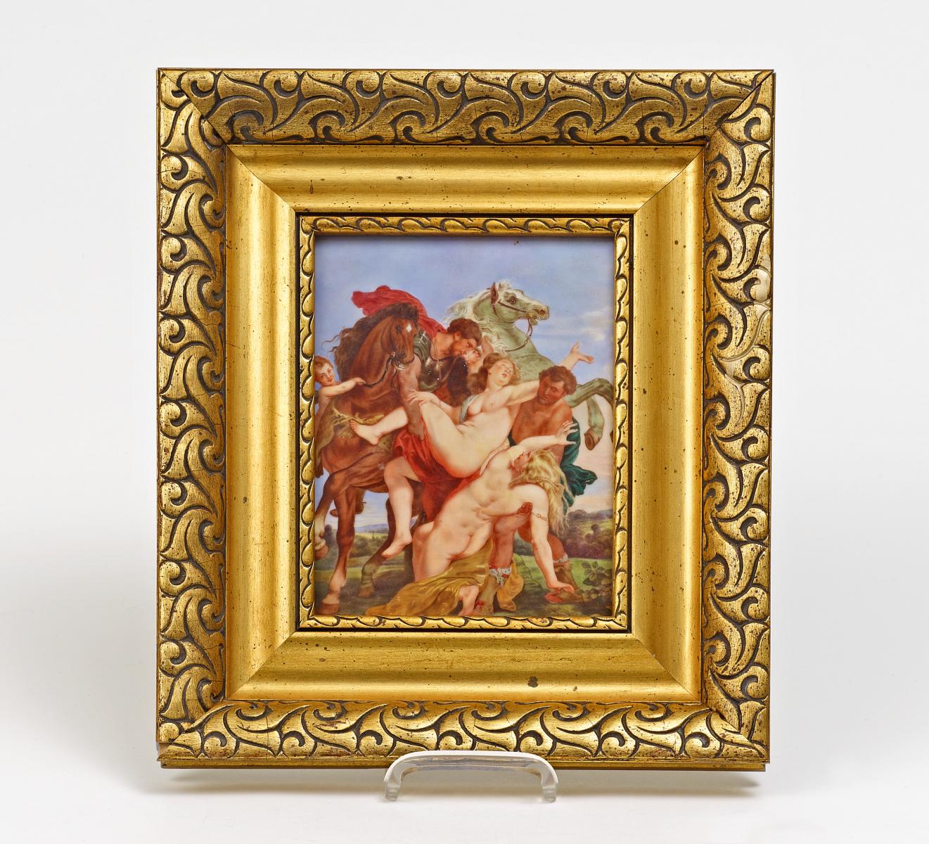 Porzellan, farbig bemalt. Platte 22,5x17,5, Rahmen 36,5x32cm. Zustand A/B.