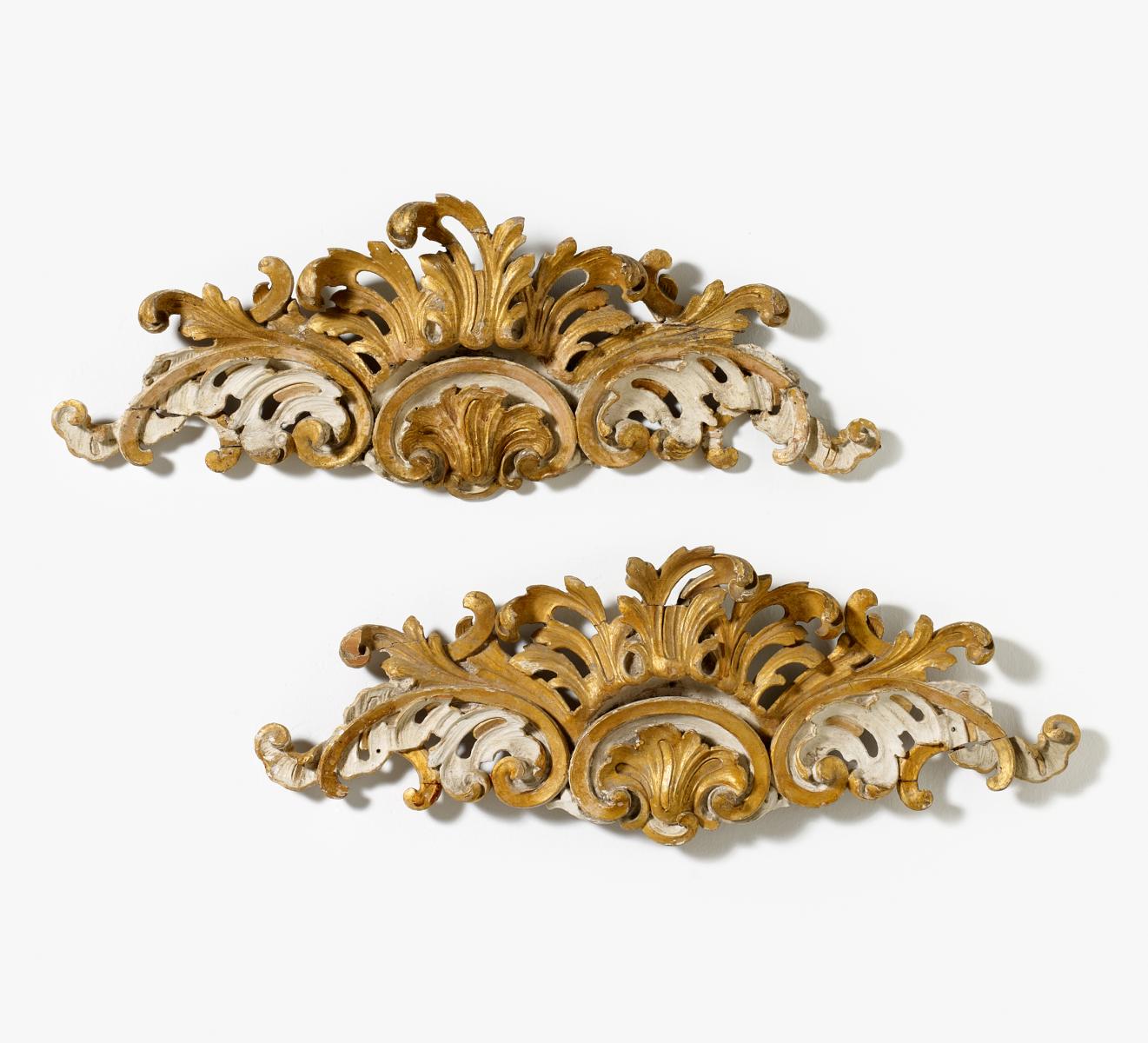 Holz geschnitzt, weiß und gold gefasst. 85 x 33cm. Zustand C.