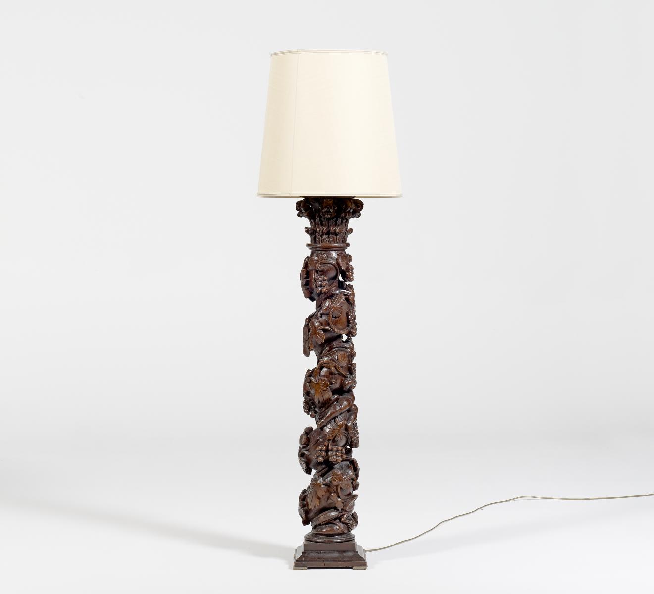 Stehlampe in Säulenform mit Weinranken und Putten.