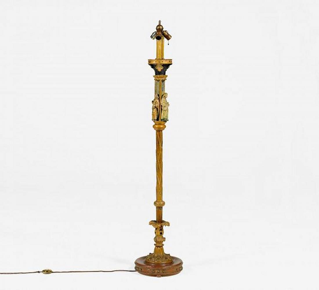 Holz geschnitzt und farbig gefasst. H.151cm. Zustand C. Elektrifiziert.