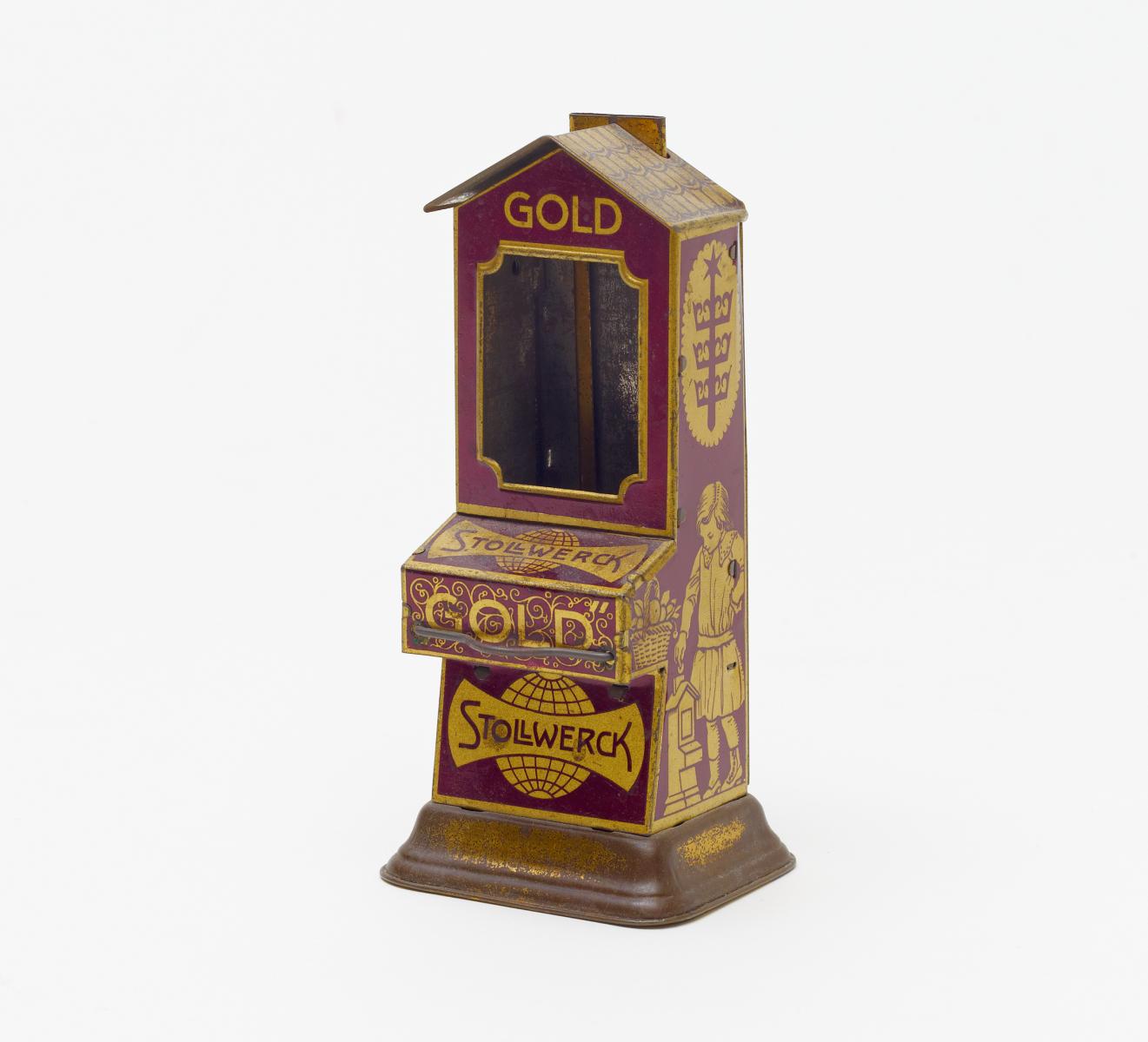 Schokoladenspender in Form eines Miniatur-Automaten.