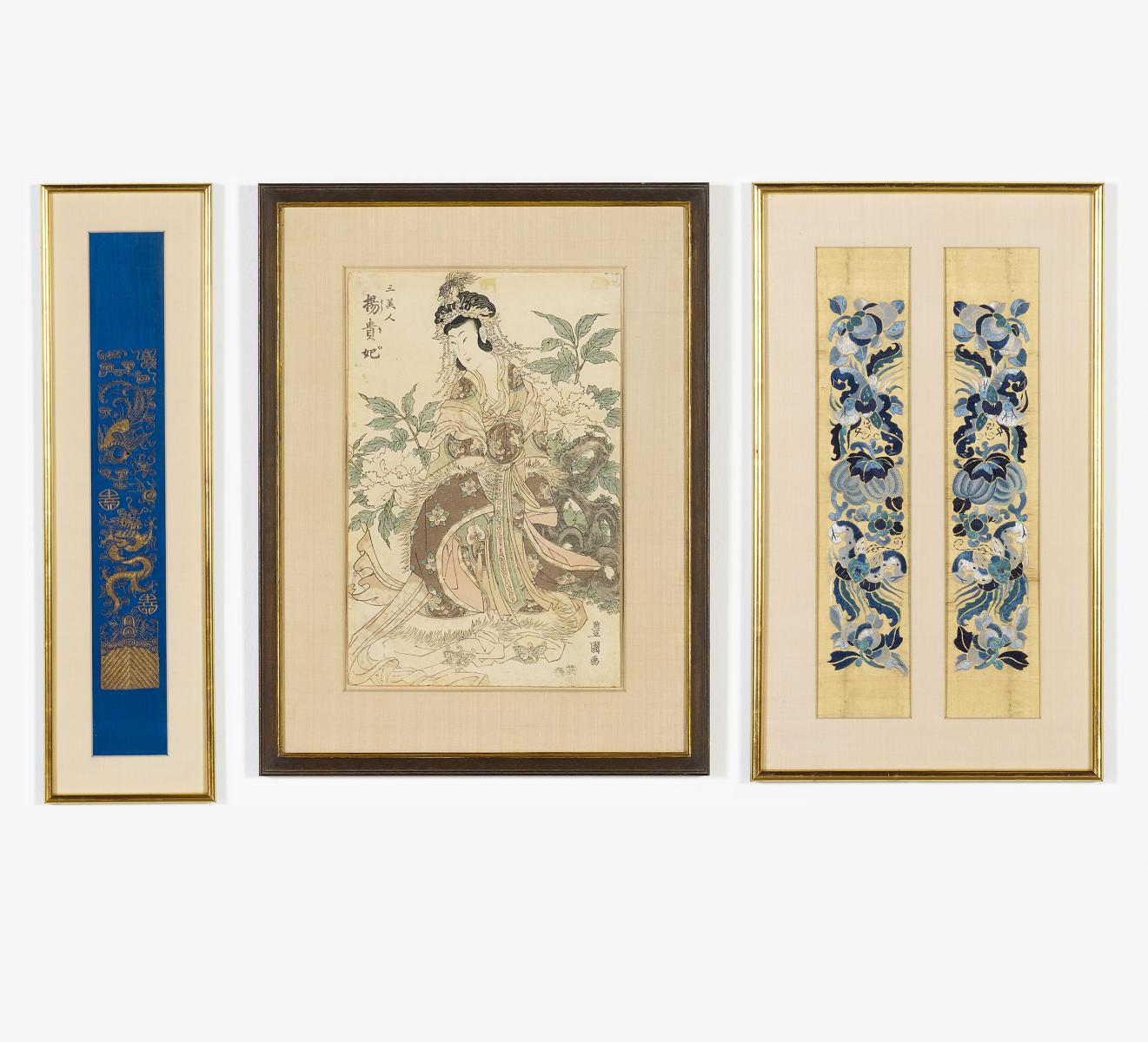 China u.a. Blatt 36,5x24 /2 x ca. 53x11 /74,5x11cm. Gerahmt. Zustand A/B.
