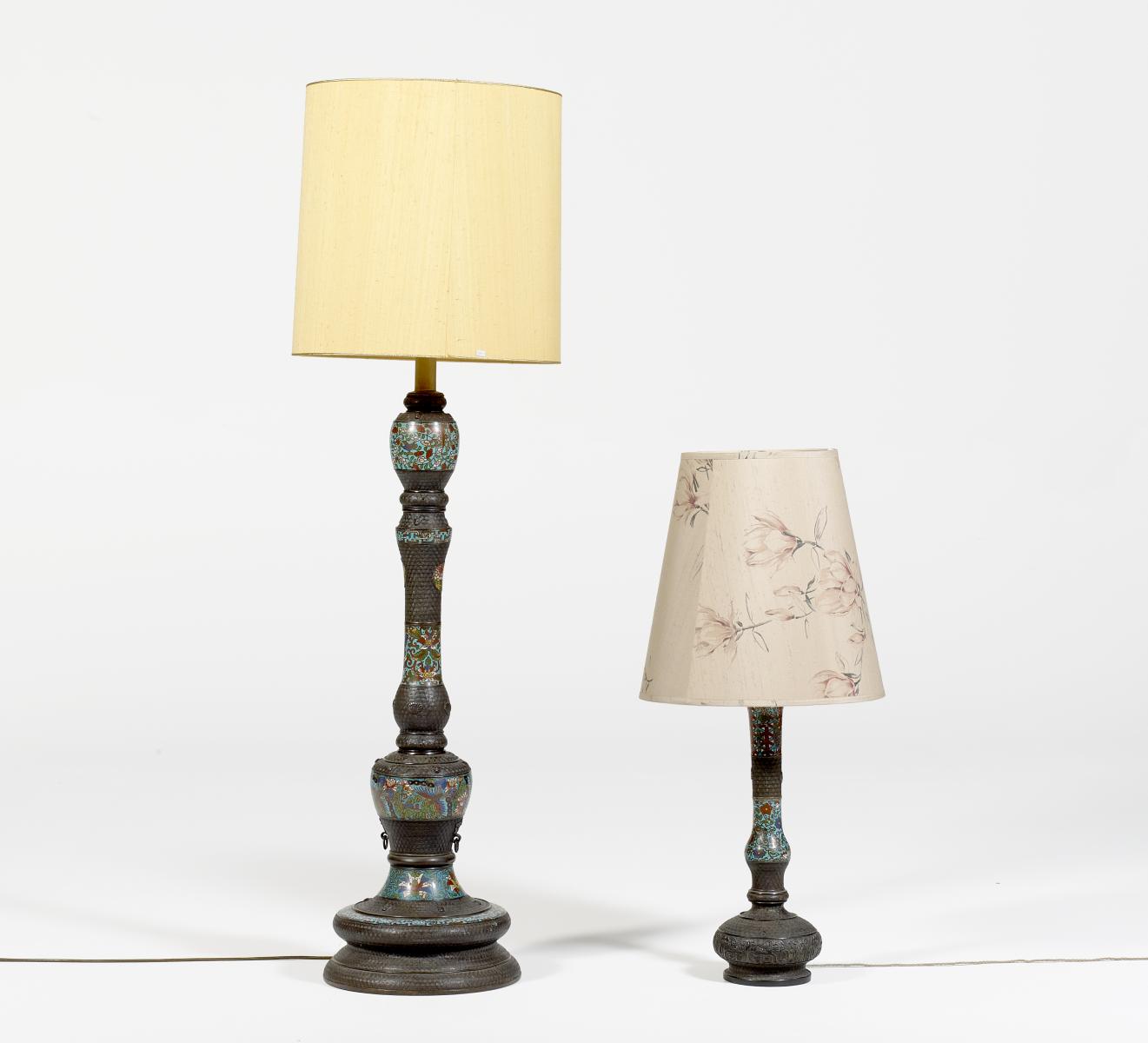 Zwei Stehleuchten mit Cloisonné-Dekor.