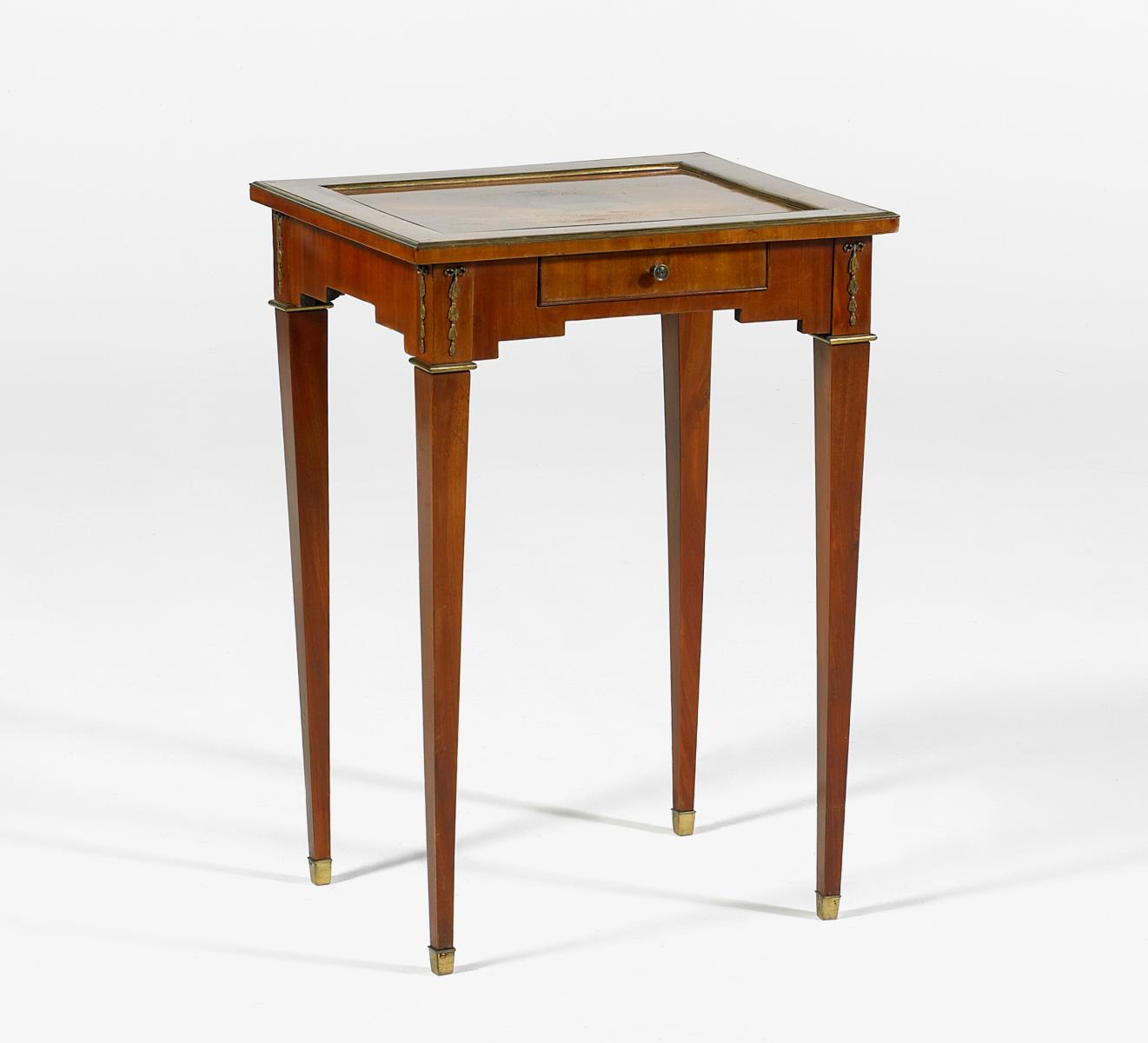 Mahagoni, Messingapplikationen. 74x52x44cm. Zustand C.