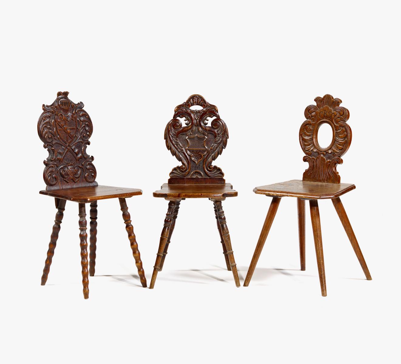 Eiche geschnitzt. Verschieden. H.92/93/94cm. Zustand B.