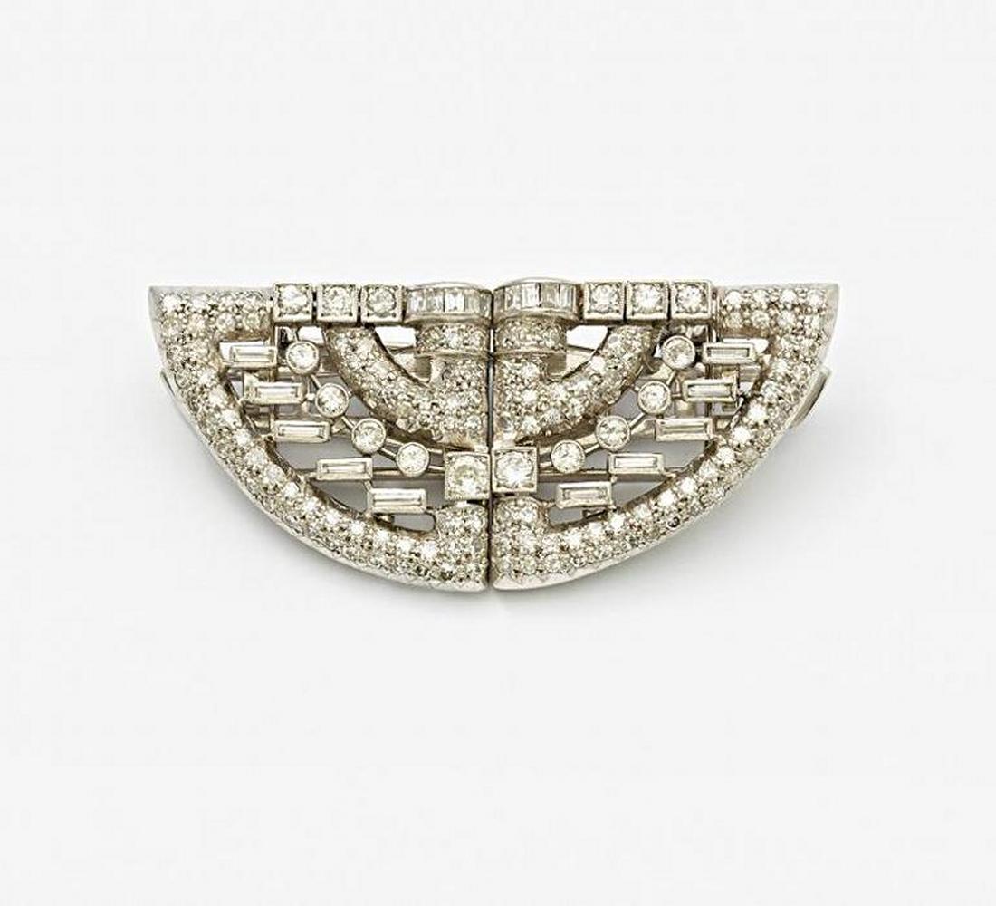Art Deco. Doppelclip mit Diamantbesatz.