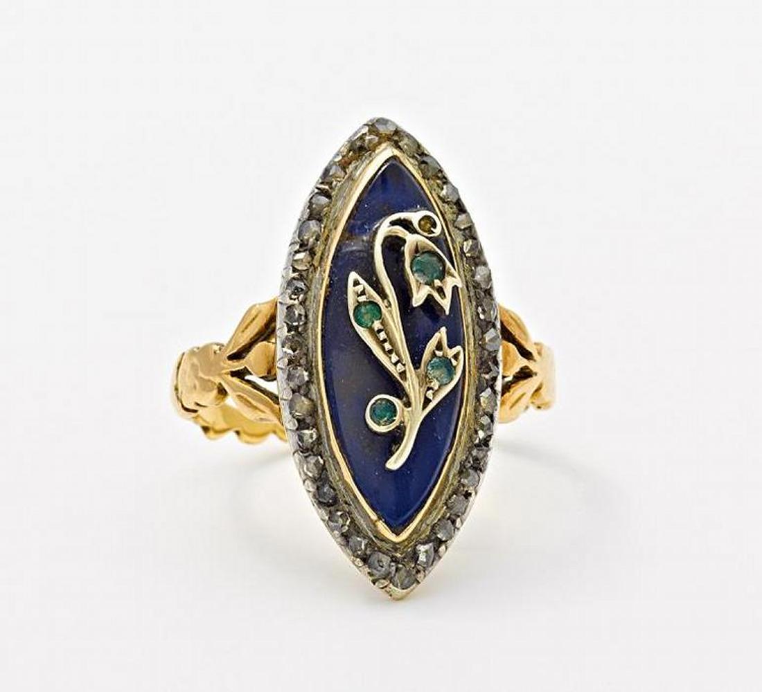 Historischer Marquisering mit Smaragd-Diamantbesatz.