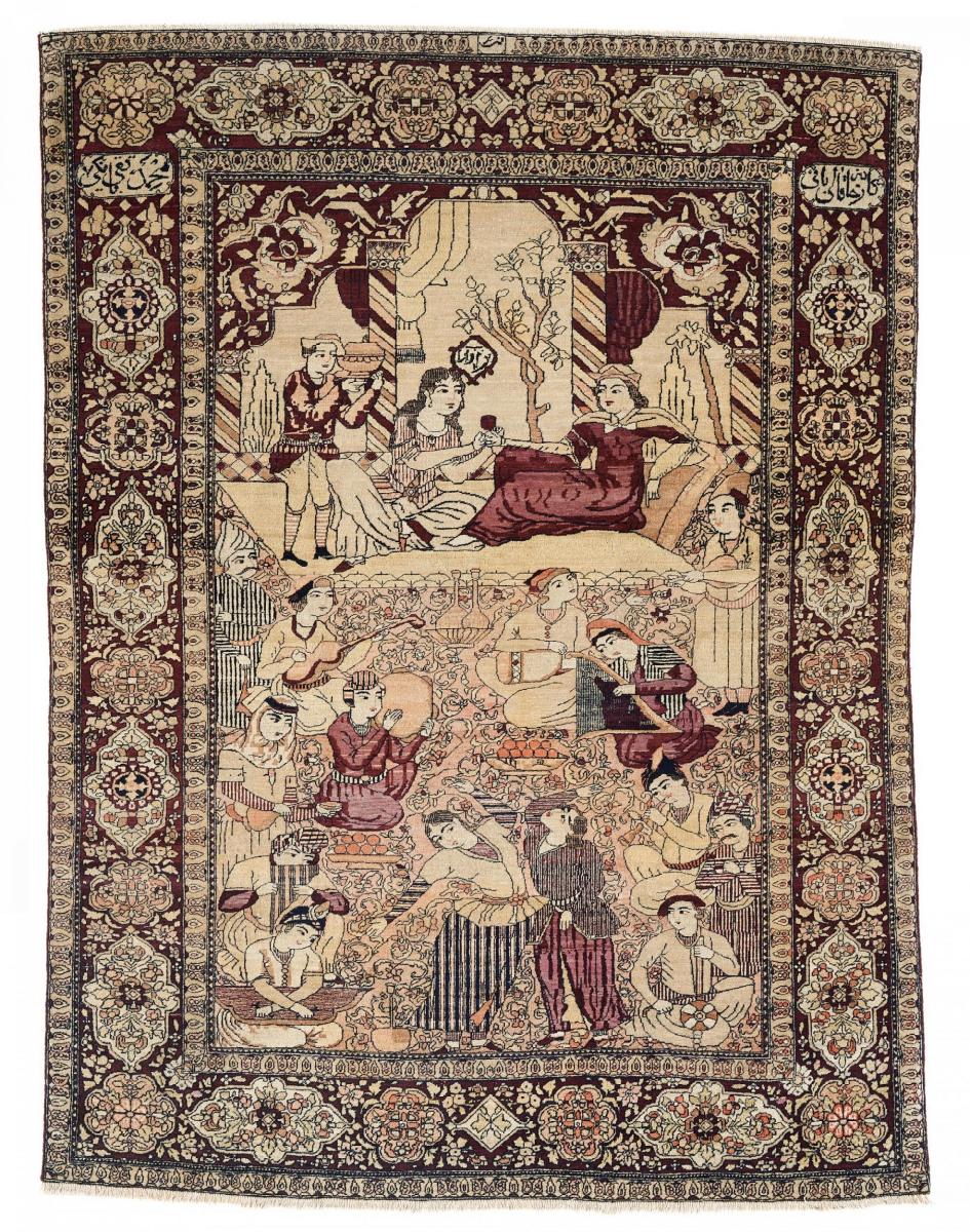 Um 1900. 180 x 132cm. Sign. Mohammed Taghi Banki. Zustand C. (Im Ganzen dünner Flor).