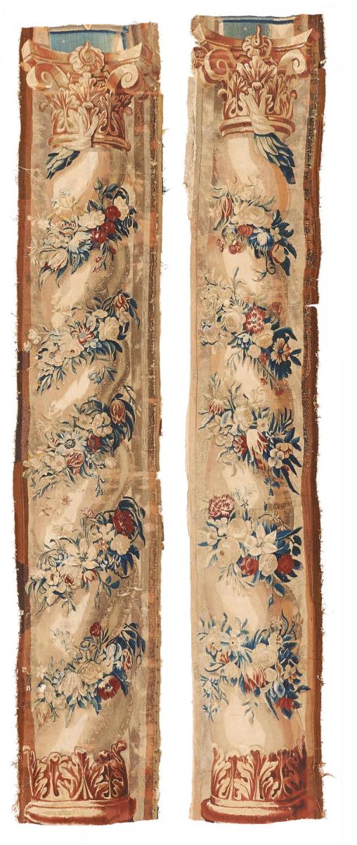 Zwei Tapisserie-Bordürenfragemte. 17./18.Jh. 293 x 49cm. Zustand D.