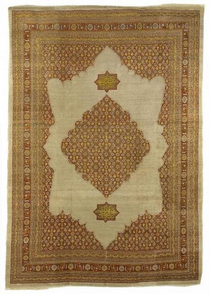 Täbris, Haji Jalili. Ende 19.Jh. 397 x 280cm. Zustand C. (Im Ganzen niedirger Flor, kleine Mottenschäden in den äußeren Bordüren).