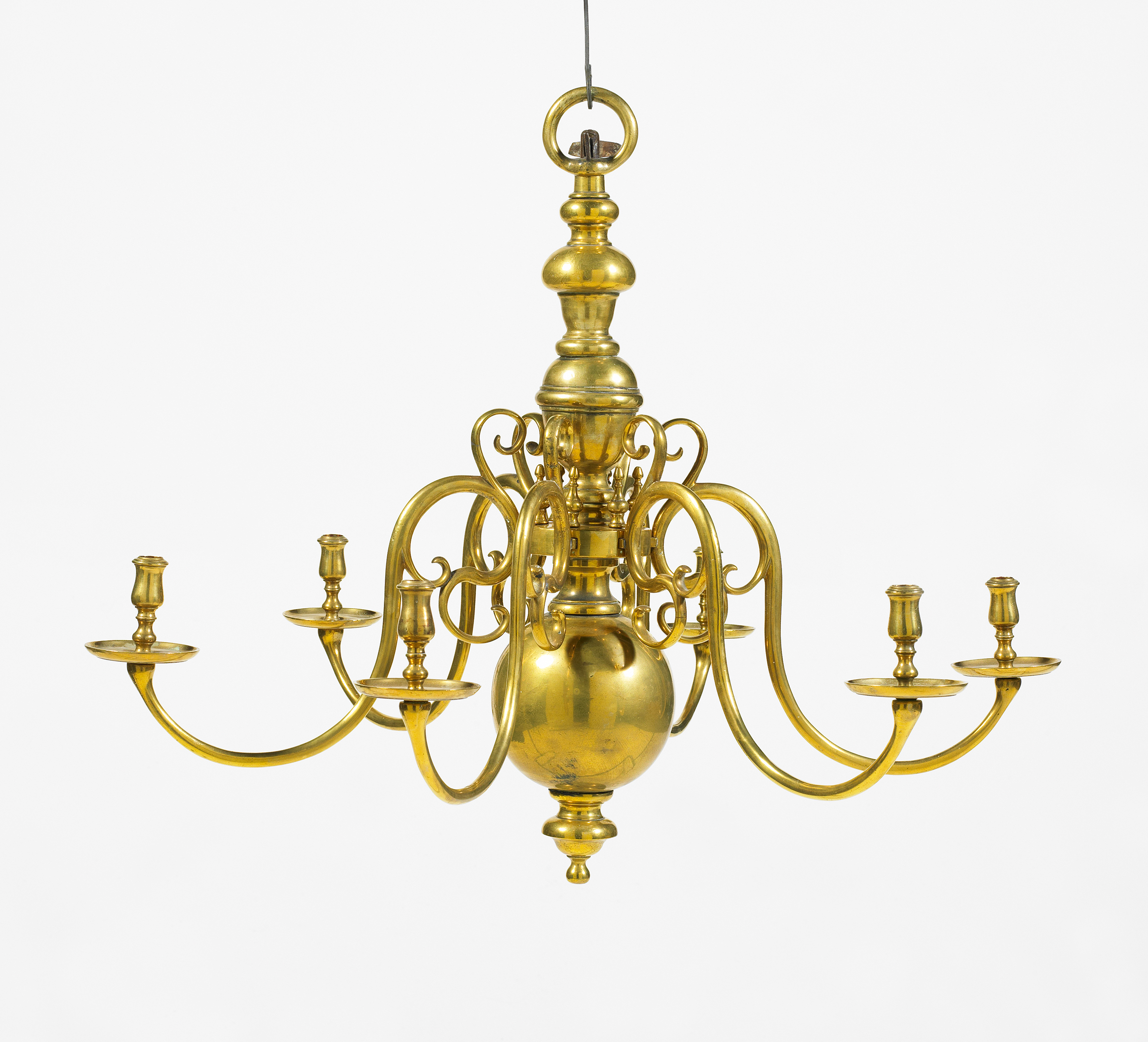 Bronze. Sechsflammig. Höhe ca. 78 cm. Zustand B.