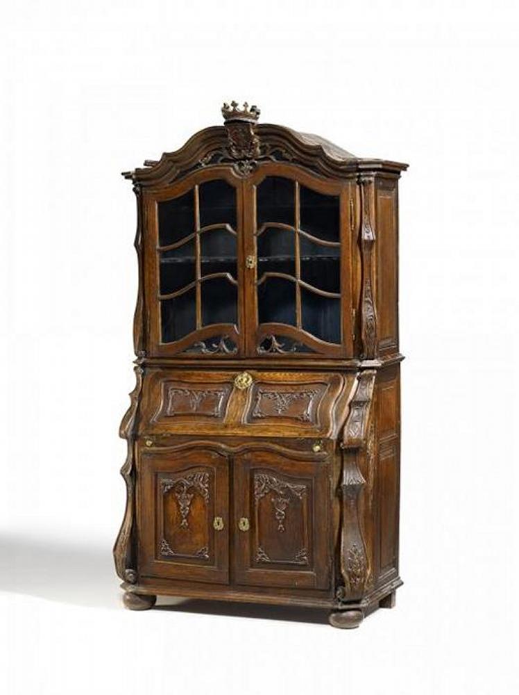 ROKOKO SCHREIBSCHRANK MIT VITRINENAUFSATZ